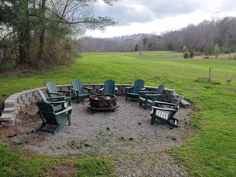 Additional outdoor features include covered decks, patios, and a fire pit area, creating multiple spaces for gathering and relaxation. These areas are ideal for entertaining guests or simply enjoying the peaceful setting.