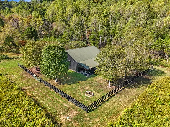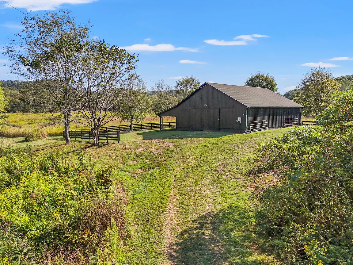 The barn’s layout also allows for flexible use — from storing equipment and ATVs to housing livestock or converting space for additional sleeping quarters.