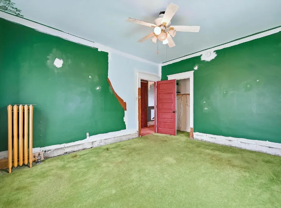 How about that staircase and entryway! This is a lot of house for the money. Almost 5,000 square feet. The house was built in 1876. It is located in Fort Wayne, Indiana. The house features a covered front porch, wood floors, baseboards, pocket doors, grand staircase, beautiful fireplace, built-in window seating, paneled wainscoting and a large back porch. Seems the second floor needs the most work, but the house is livable so someone could work room by room. Six bedrooms, five bathrooms and 4,736 square feet. $199,900