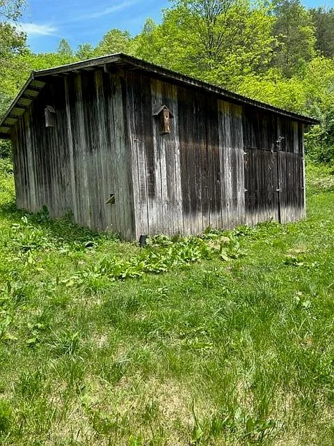Furthermore, a large outbuilding constructed from sawmill lumber offers versatile use. It can function as a garage, workshop, or storage facility. The basement holds a stoker furnace that currently requires service. Moreover, a cinder block foundation supports the structure, providing durability for future projects or upgrades.