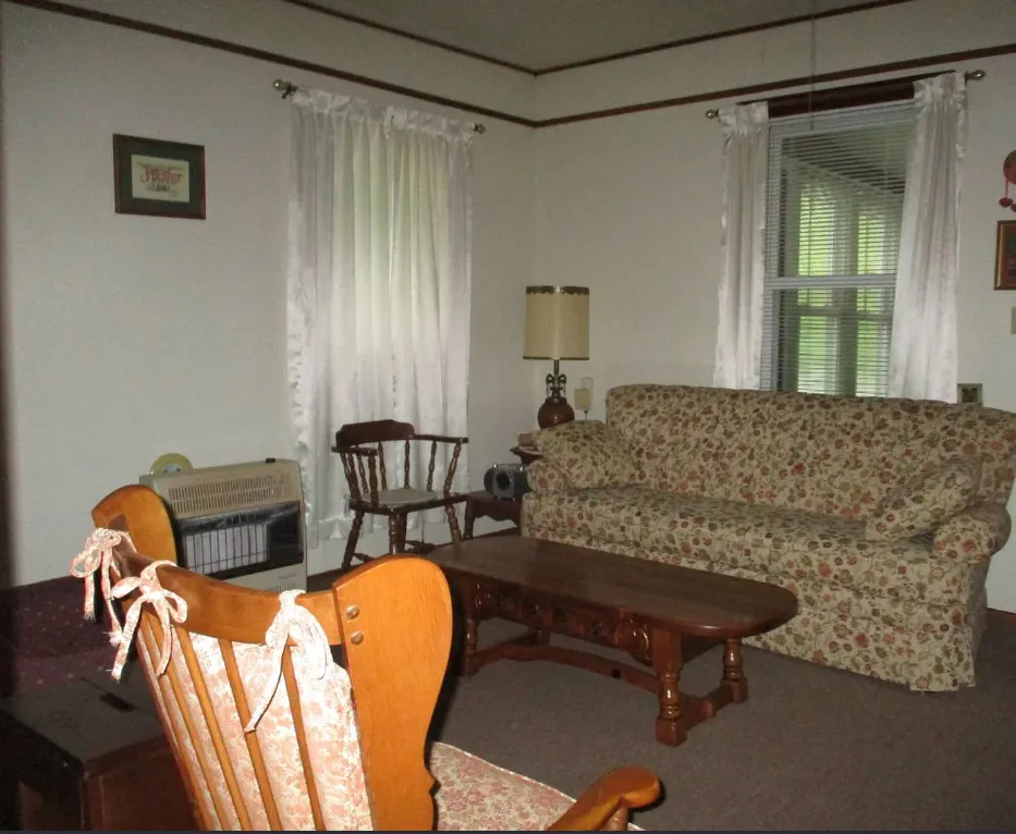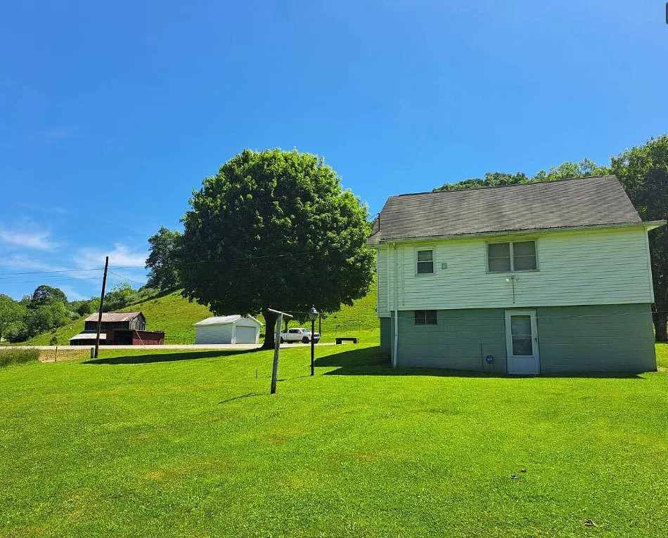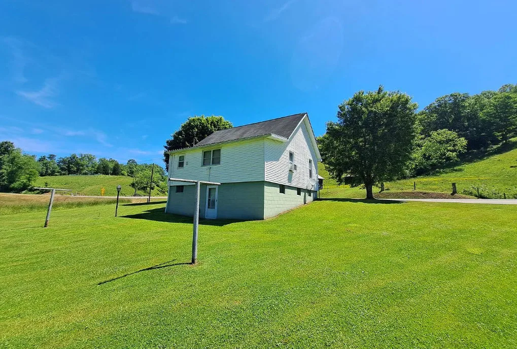 This is a really pretty property! Love the rolling hills! The house was built in 1900. It is located on 49 acres in Troy, West Virginia. The house features an enclosed front porch, picture rails and an unfinished basement. The house could use some work and updating, but it has potential and it looks livable. The property is really pretty with rolling hills and a creek. There are multiple outbuildings on the property. Three bedrooms, two bathrooms and 1,216 square feet. $250,000