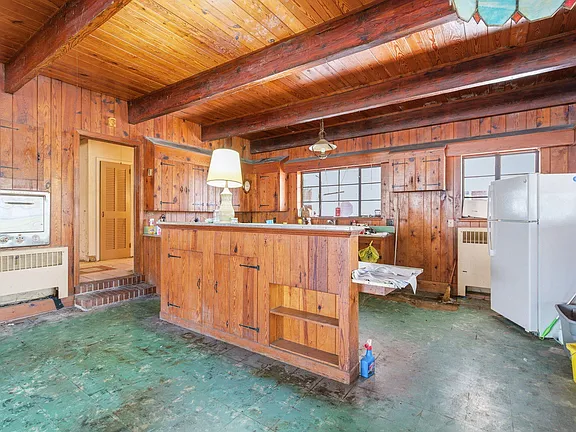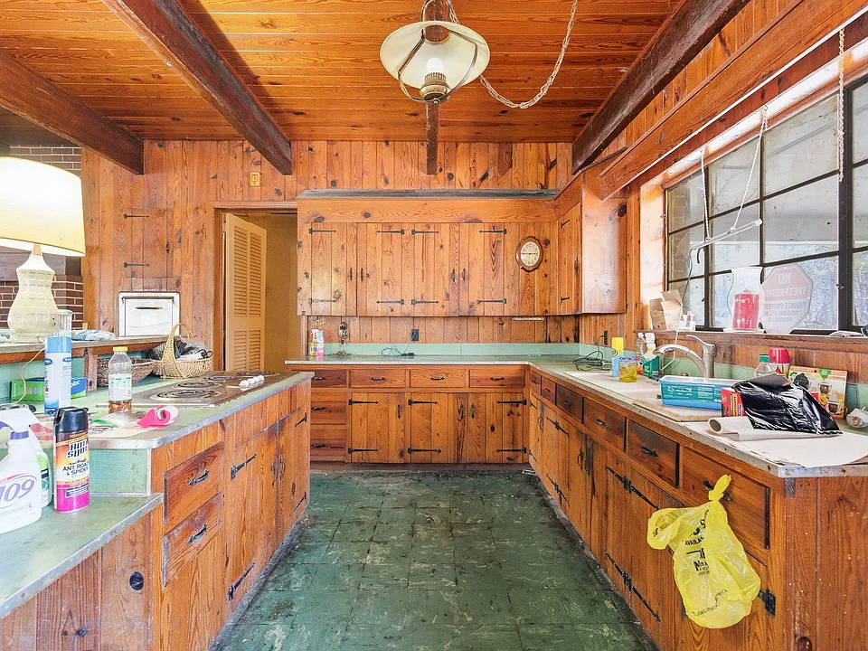 The kitchen is another standout feature, offering a large open layout with an island and plenty of character. While it may need updates, its size and configuration provide an excellent foundation for a modern redesign.