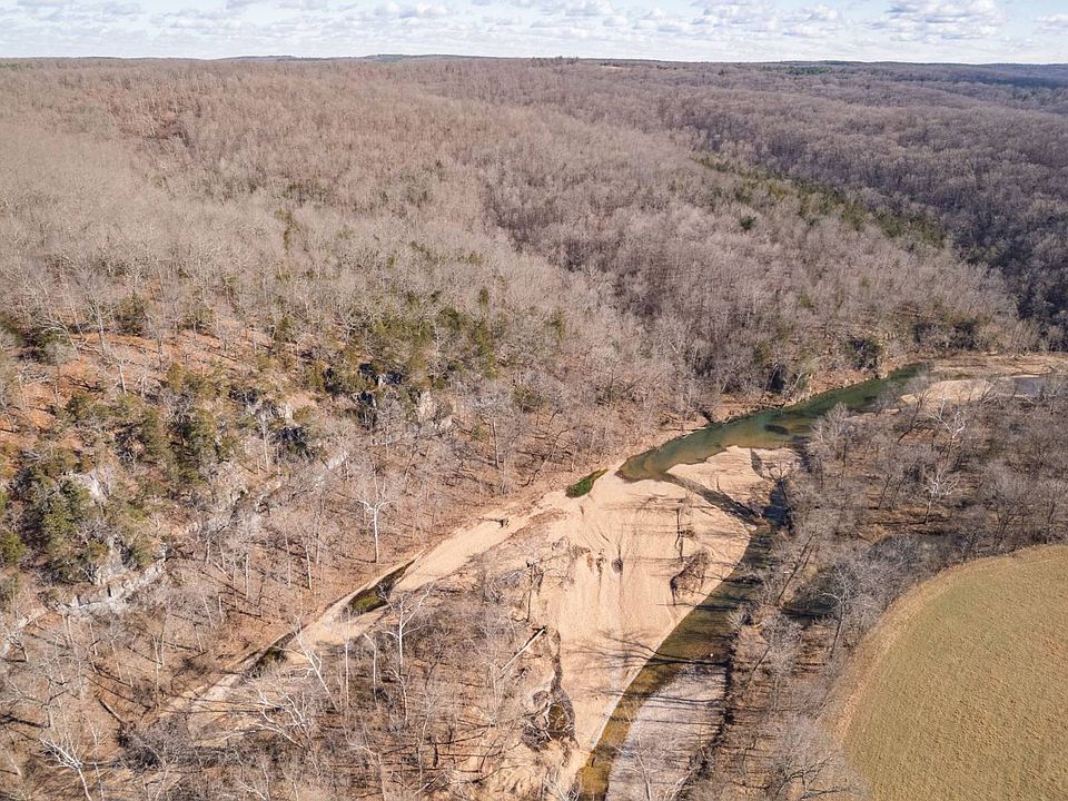 The land showcases classic Ozark topography, featuring a diverse mix of rolling ridges, wooded hollows, and fertile creek bottom areas. This varied terrain not only enhances visual appeal but also creates numerous potential building sites throughout the property. Buyers may choose from elevated ridgetop locations with sweeping views, mid-slope homesites overlooking the creek, or more secluded spots tucked into the timber.