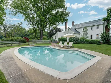 Stepping outside, the grounds of Auburn Hill unfold gracefully, offering countless spaces to relax, entertain, and enjoy the outdoors. A sparkling saltwater pool invites warm-weather enjoyment, while the surrounding brick terrace provides a perfect setting for outdoor dining, summer gatherings, or quiet mornings with coffee. Near the home, a beautifully maintained garden adds color and charm, showcasing seasonal blooms and providing a peaceful spot to unwind.