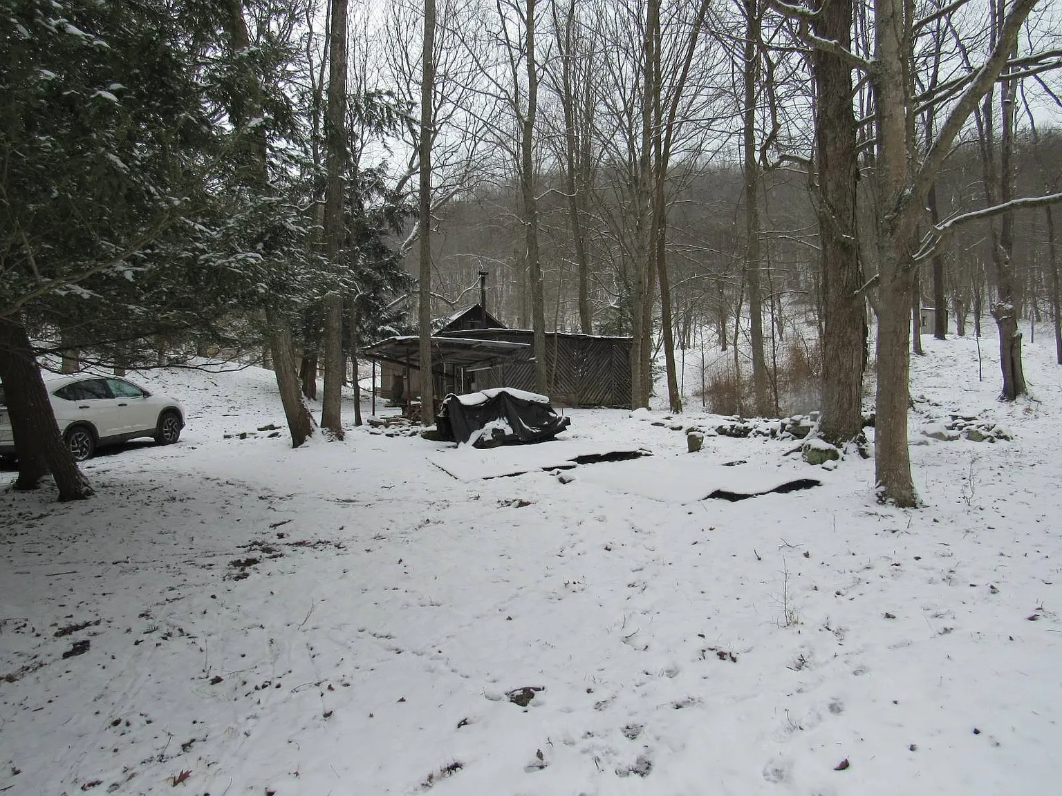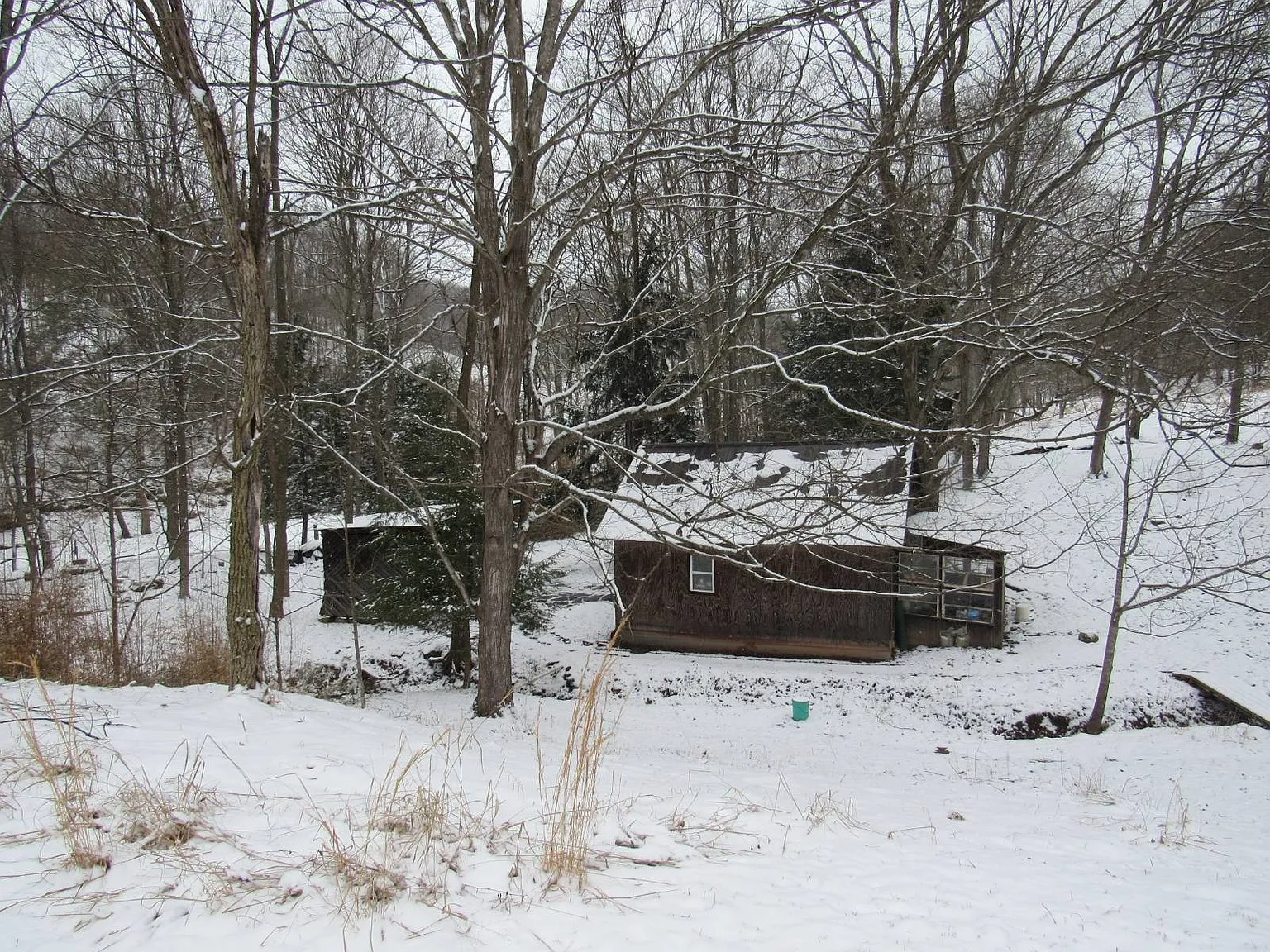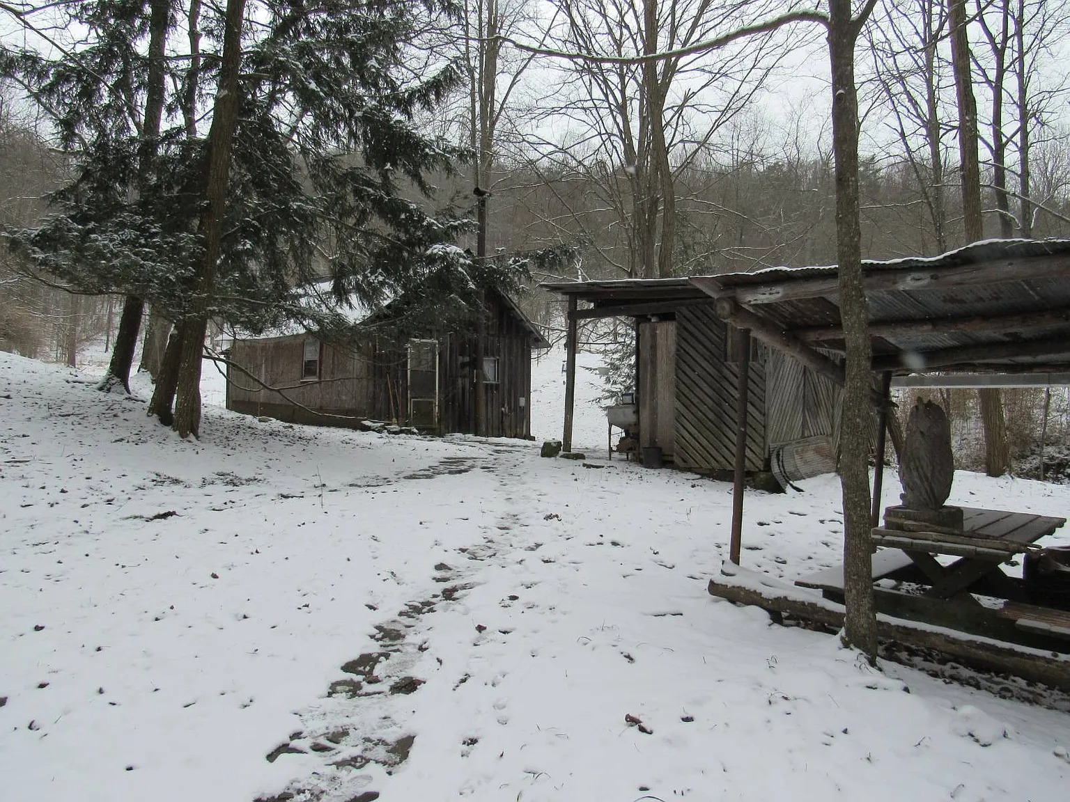 The property includes a 16 x 16 cabin that serves as a primary shelter. Additionally, you will find a very nice barn with a functional loft. This barn includes water access and a workshop for various projects. A covered wood shed and a pavilion provide extra utility for outdoor living. Because the current owner loves nature, the woods remain largely undisturbed. You will not find any existing ATV trails on the acreage yet. Consequently, the land is a blank canvas for your own development plans. This is an excellent opportunity for hunters or nature enthusiasts.