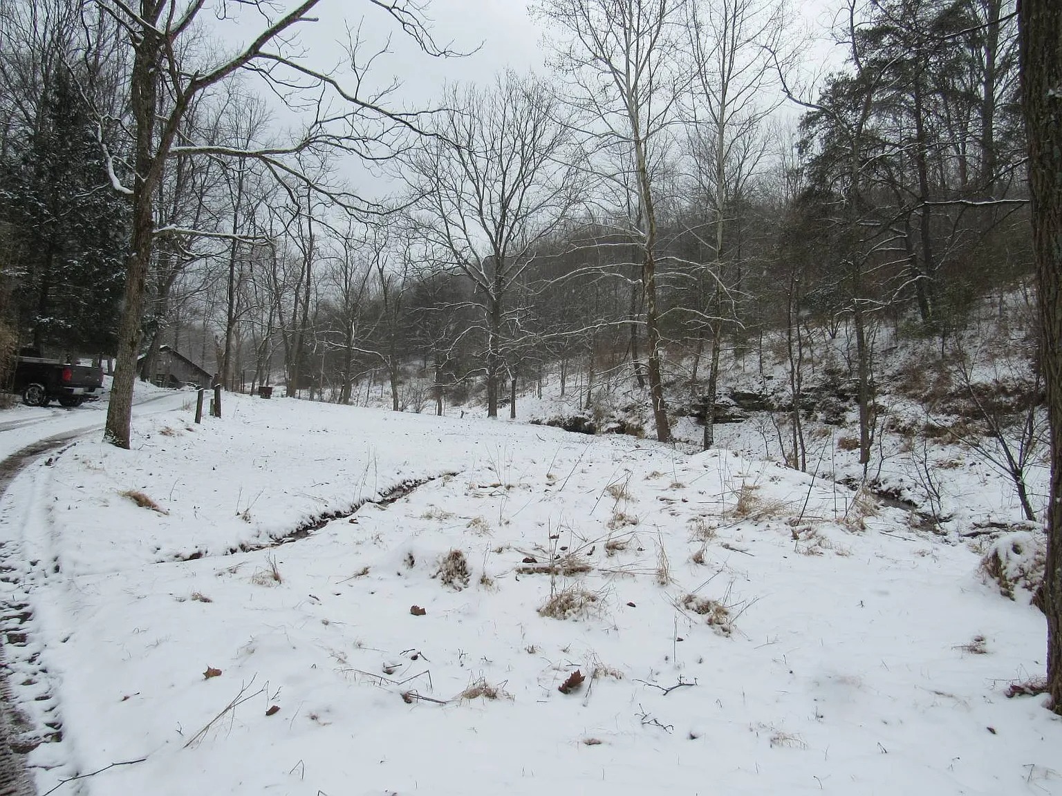 The 130-acre lot offers a mix of open fields and thick woods. A small stream runs along the county road for a natural water feature. You will find some fenced-in areas already prepared for livestock or gardening. The thickets provide excellent bedding areas for local deer populations. Also, the open woods are easy to navigate for hiking or exploring. You have plenty of room to build a larger home if desired. Because the land is so expansive, your neighbors are far away. The Beech Fork body of water adds to the scenic value of the tract.