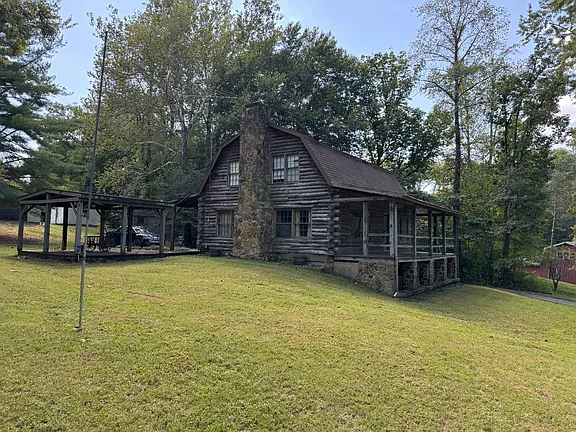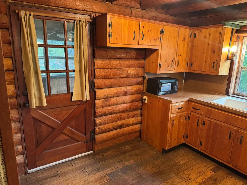 A guest retreat or vacation rental property, where guests stay in the cabin or adjacent outbuildings, enjoy the pavilion and land, and experience a country escape.