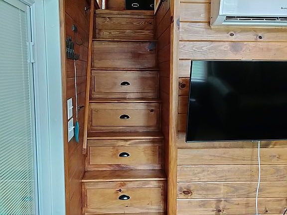 The home features approximately 400 square feet of main-level living space, plus an additional 160-square-foot loft, providing surprising versatility and room to spread out. Every inch of this home has been carefully planned to maximize functionality while maintaining a warm and inviting atmosphere.