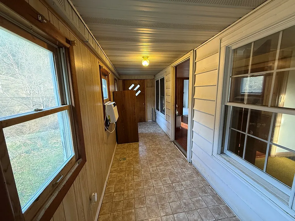 The breezeway, connecting parts of the home, offers exciting possibilities. It could easily become a cozy sitting room filled with natural light, a breakfast nook overlooking the property, or even a mudroom designed for farm life. The boxed-in porch could be reimagined as a sunroom, reading space, or hobby area — a place where you can enjoy morning coffee while looking out over your land.