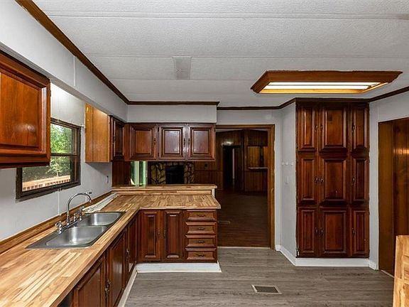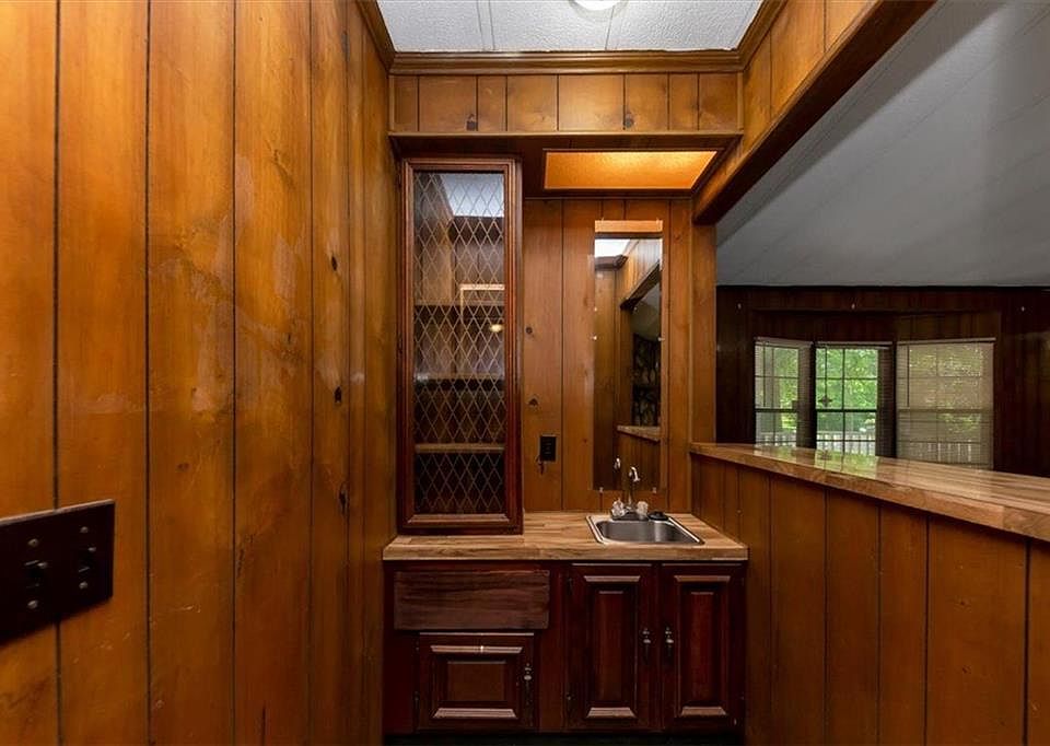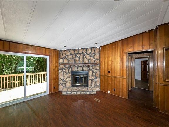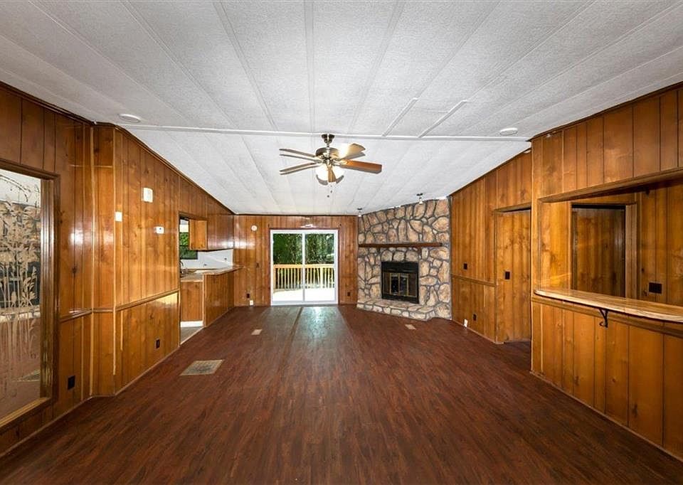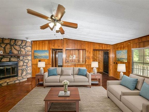 Relaxed Living Awaits in This Tree-Surrounded Home with Stone Fireplace