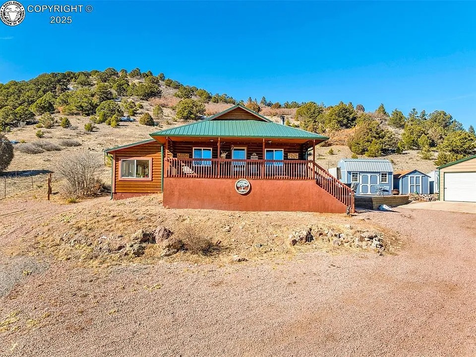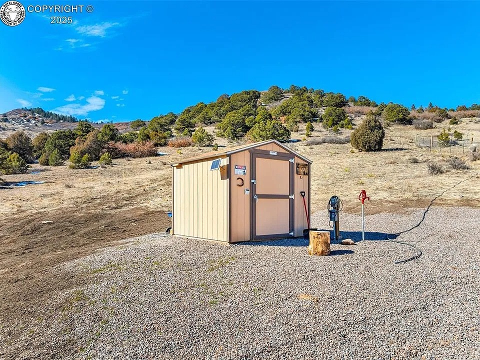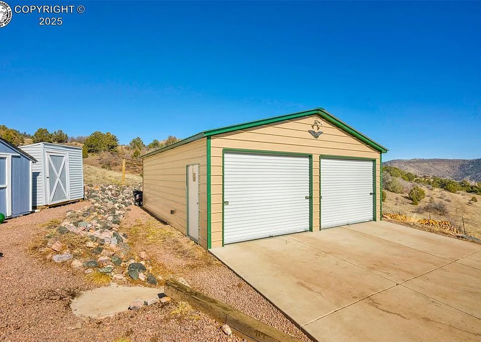 On-site systems support reliable off-grid operation throughout the year. A producing well delivers strong water flow, while a large cistern adds reserve capacity. A generator supports electrical needs, and the gated community adds another security layer. Several sheds provide storage, and one includes power for equipment use. A detached garage expands vehicle or workshop options. Because of these features, daily operations remain stable during weather changes or extended stays.