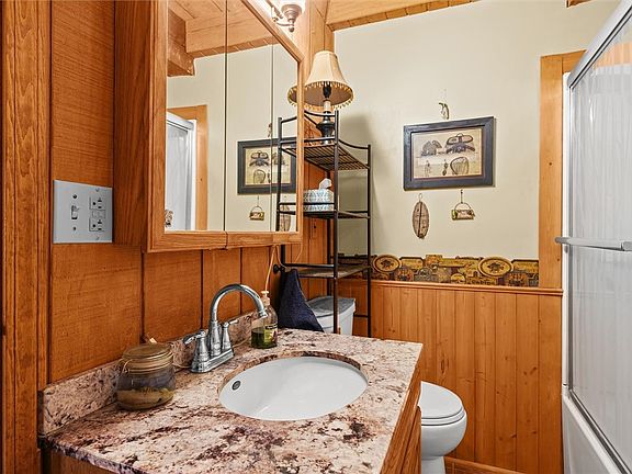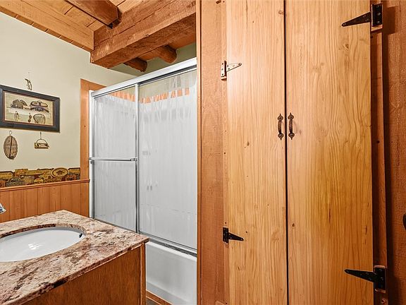 With two full bathrooms, the home is well-suited for hosting guests or accommodating extended stays. One of the bathrooms was remodeled in 2019, offering updated finishes that complement the cabin’s rustic aesthetic while providing modern convenience.