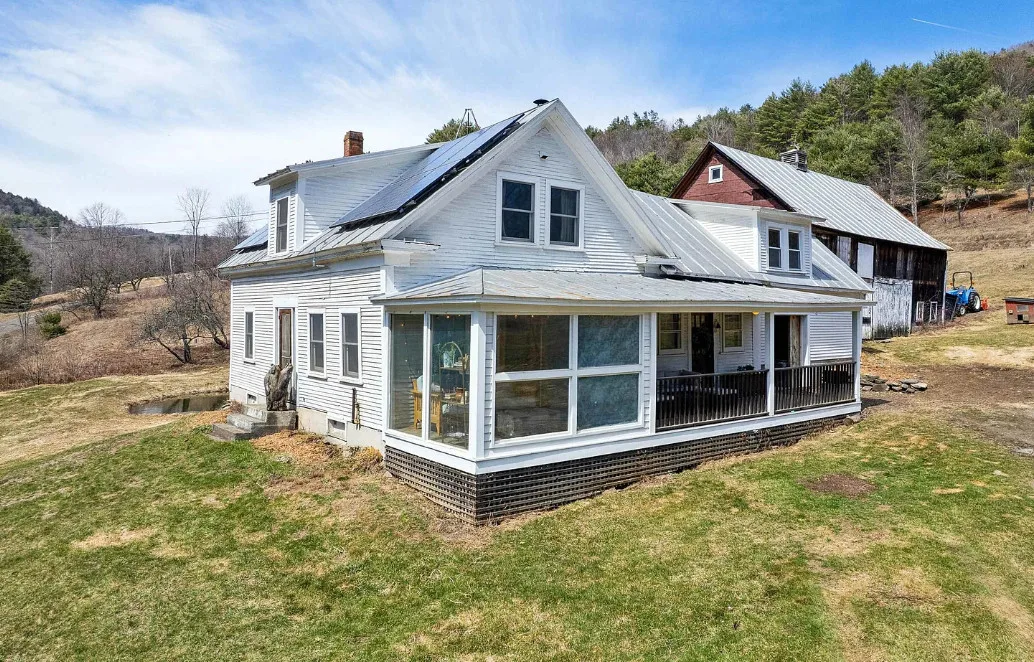Step into your own 1850s fairytale, where original exposed beams, polished wood floors downstairs, and beautifully painted pine floors upstairs create a warm, timeless charm. Thoughtful custom built-ins add character throughout, while a dreamy covered porch—partially enclosed as a sunroom—offers the perfect spot to relax in any season. Out back enjoy a private deck, ideal for unwinding under the Vermont sky. Inside, the cozy wood stove anchors the living space, with hot water baseboard heat available for added convenience. With three bedrooms upstairs and generous living space below, this home offers both comfort and flexibility. Integrated solar panels help offset electric costs, supporting a more sustainable lifestyle. Set on nearly 40 acres, there’s plenty of room to explore and enjoy the beauty of Vermont. All this, just a short drive to South Royalton—home to Vermont Law School—and only 35 minutes to the Upper Valley.