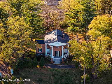 “East View,” also affectionately known by locals as the “Old Turtle House,” stands as a remarkable monument to the enduring beauty and craftsmanship of early 19th-century architecture. Built in the 1820s, this rare example of Italian and Russian-inspired Federal design is more than just a house—it is a living testament to an era of elegance, artistry, and cultural sophistication. Perched gracefully atop a high knoll, the property commands attention not only for its architectural significance but also for its serene, park-like surroundings that stretch across 2.11 acres. Listed on the National Historic Register, “East View” offers an exceptional opportunity for those who appreciate history, design, and the timeless interplay between nature and structure.