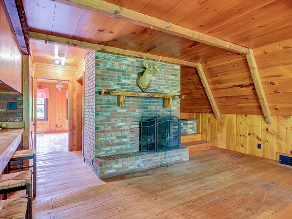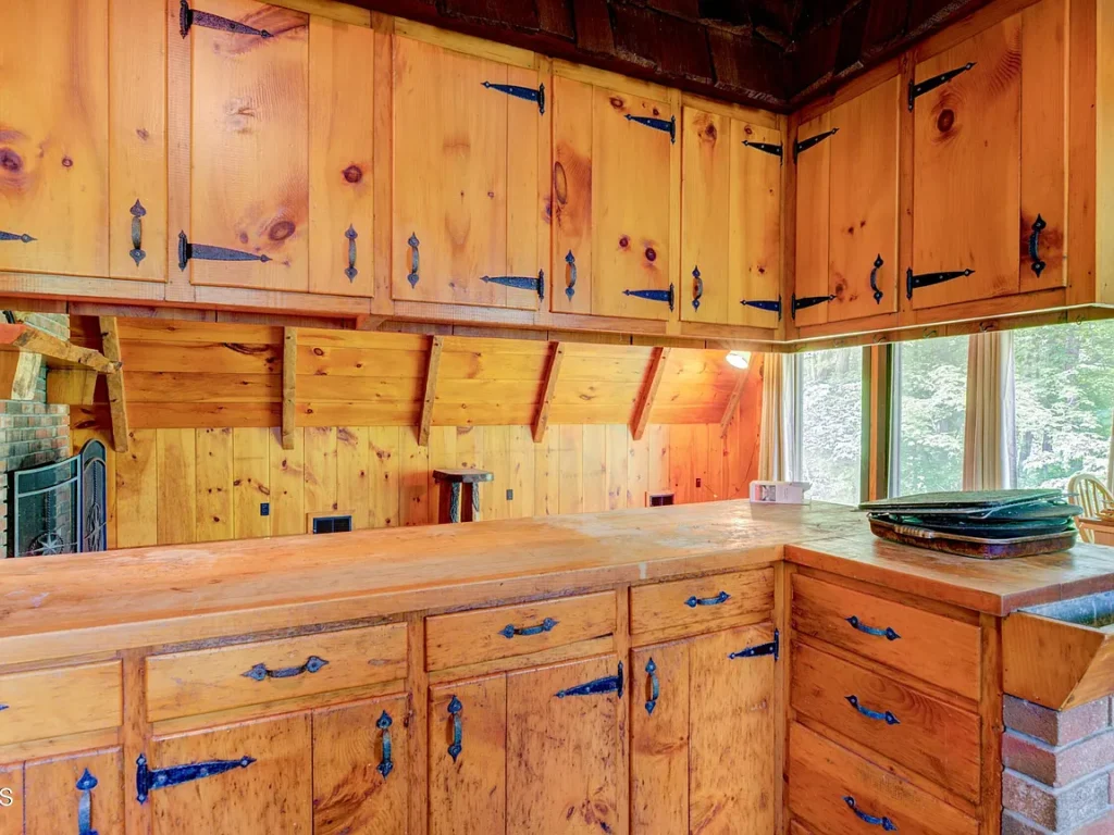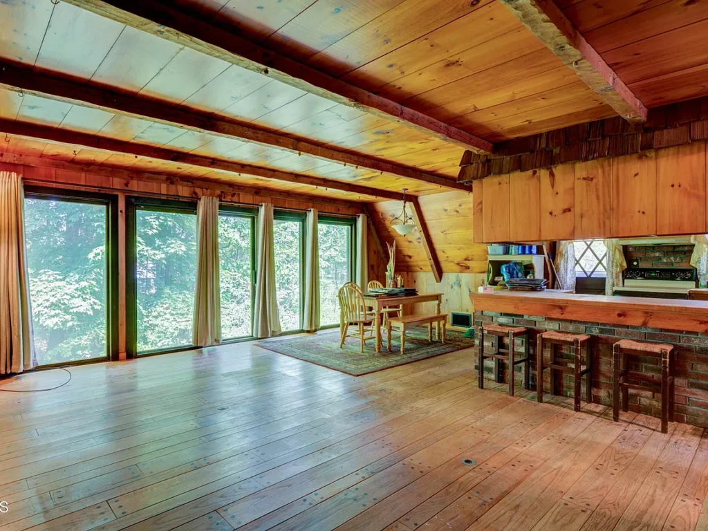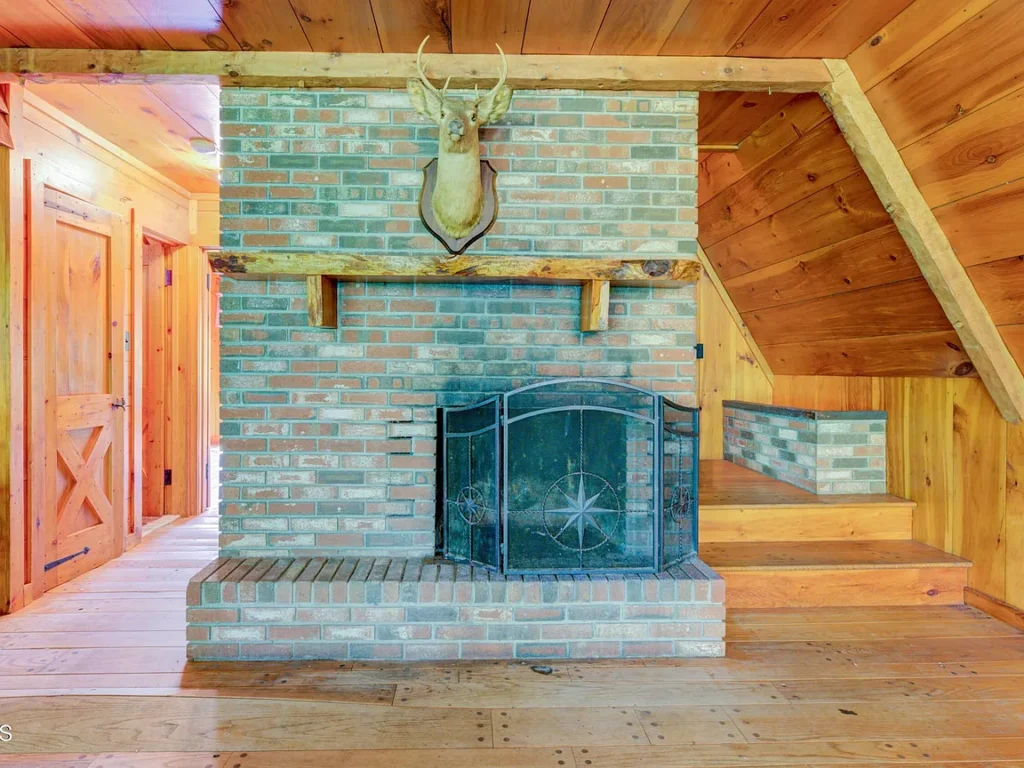 A second fireplace adds charm and comfort, especially on cool autumn evenings or snowy winter mornings, making the main living area a place you’ll never want to leave. Natural light floods the room throughout the day, highlighting the craftsmanship of the woodwork and enhancing the welcoming feel of the space.
