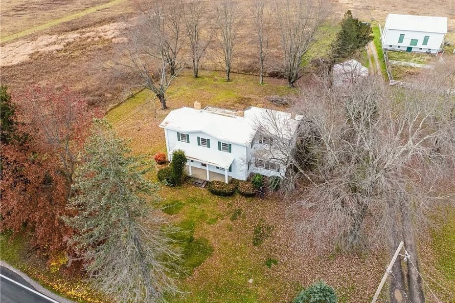 The farmhouse dates to 1870 and provides four bedrooms across two finished levels. All bedrooms sit upstairs, therefore daily living remains organized and practical. The main level includes a kitchen, formal dining room, and living room with dual chimneys. Also, a two-car attached garage adds everyday convenience. Updated mechanical systems include a newer gas furnace, central air, and strong electrical capacity. Because utilities already serve the home, ownership focuses on use rather than upgrades.