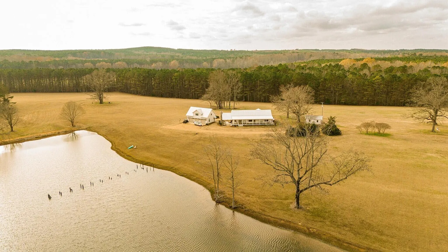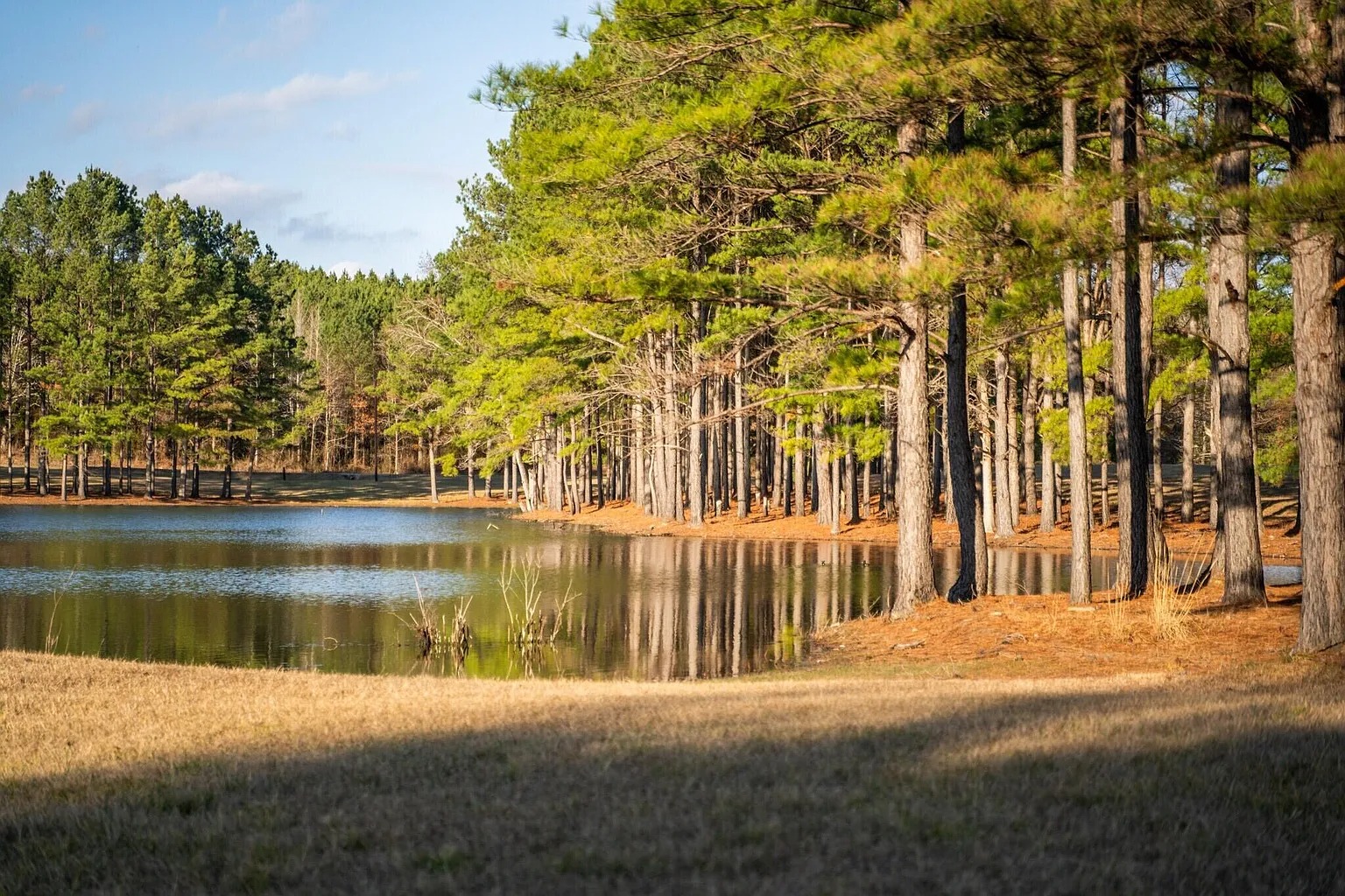The 131 acres include several different land uses. About 101 acres surround the home directly. Another 30 acres sit across the road and include a second pond. A five acre lake sits near the house and serves as a visual focal point. Hayes Creek runs through the property and adds natural water access. About 41 acres contain mature pine timber enrolled in a conservation program. Open pasture areas may support hay production or grazing animals.