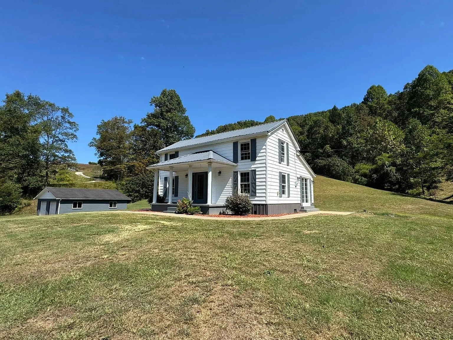 Recent updates include new central heating and cooling, flooring, lighting, and replacement windows. These improvements support energy efficiency and reduce near-term maintenance demands. A detached two-car garage with concrete floors provides secure vehicle and equipment storage. Therefore, owners gain workspace without sacrificing interior living areas. The property supports livestock, gardening, and rural hobbies without overwhelming upkeep. As a result, buyers gain a restored home with land that supports long-term use and flexibility.