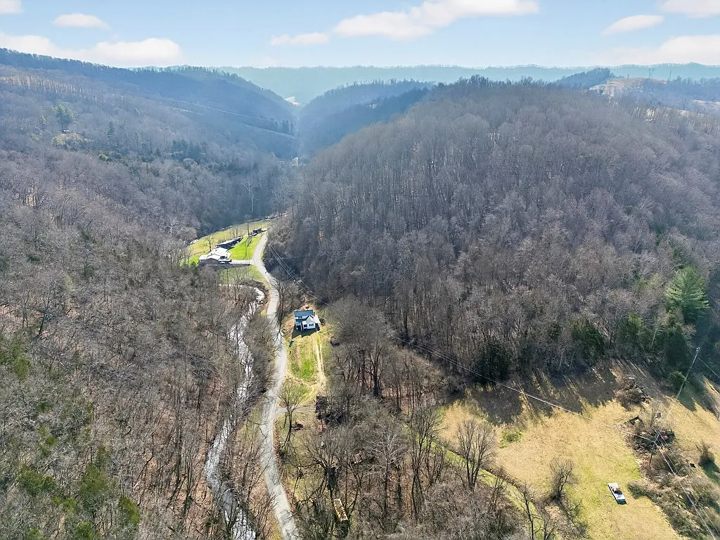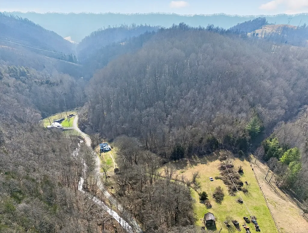 A three-bedroom farmhouse sits on 9.5 acres in Saltville, Virginia. The home includes one bathroom and about 1,550 square feet of living space. This type of property often attracts people interested in country living or small homestead projects. In addition, the acreage allows room for gardens, animals, or outdoor work areas. A nearby creek adds a natural feature across the rural road. Because the property already has public water and septic service, daily living systems are in place.