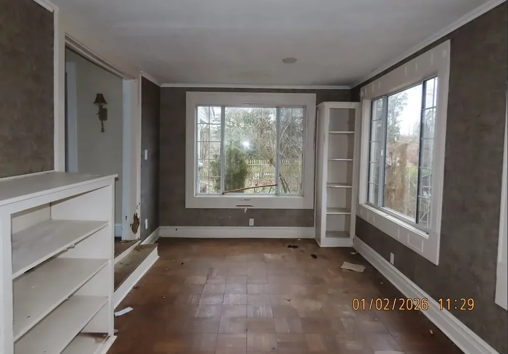 Fixer Upper Alert! This house has a lot of potential! It’s a big house with over 4,000 square feet. The house was built in 1920. It is located on .89 acre in Huntington, West Virginia. By looking at third floor pictures, the roof probably needs some attention. The house features a covered back porch, wood floors, built-in shelving, crown moulding, wainscoting and a spacious kitchen. Six bedrooms, four bathrooms and 4,592 square feet. $135,900 New price: $83,900