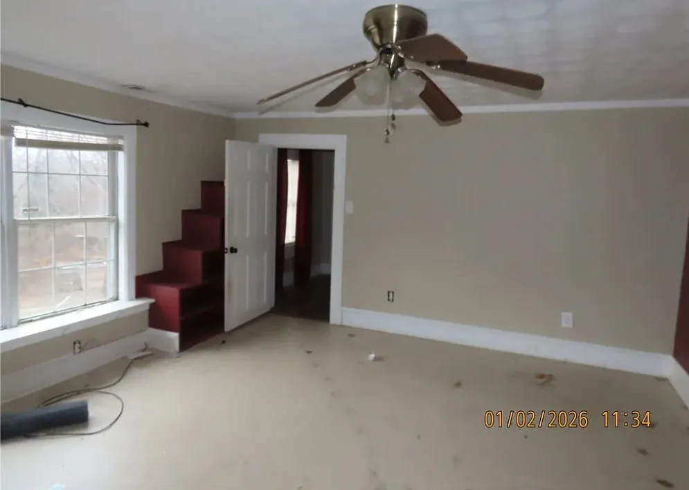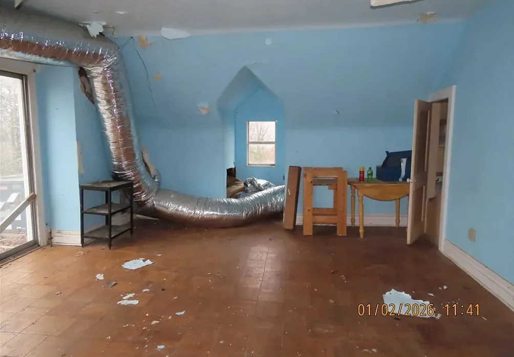 Large older 2.5 story home on nice tree lined lot. Six bedrooms and many other flex-use rooms. This needs repair and TLC but great potential. Third floor is finished and included in second story SF.