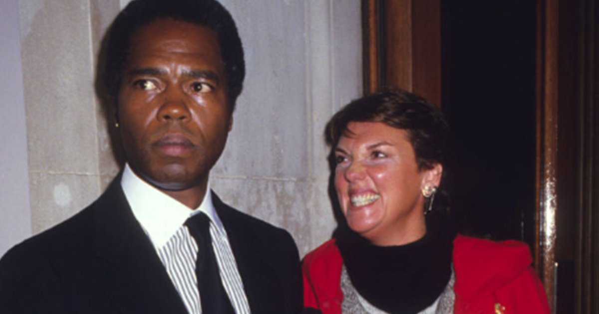 American actor Tyne Daly and her husband, Cuban-born actor George Stanford Brown, attend a performance of the British National Theatre, London, England. Brown holds a small cigar in one hand. (Photo by Fotos International/Getty Images)