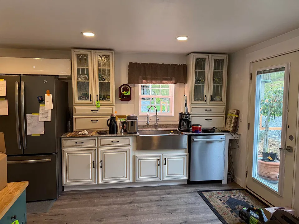 The kitchen is a standout feature of the home, combining rustic aesthetics with modern functionality. Designed with both style and practicality in mind, it includes custom soft-close cabinetry that provides generous storage while maintaining a clean and polished look.