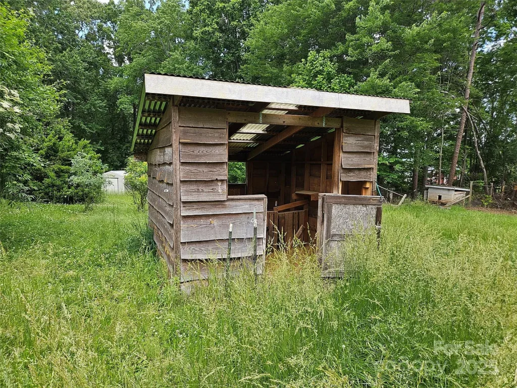 A converted singlewide mobile home at the back of the property currently used as a storage/workshop space