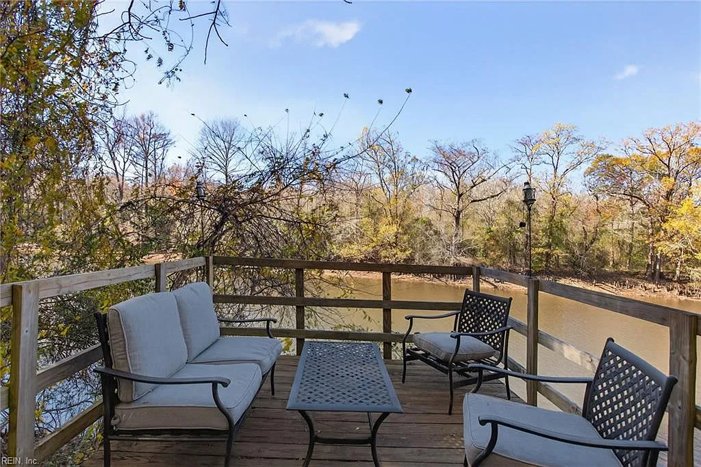 A private deck overlooking the Nottoway River, providing a perfect spot for relaxation or entertaining while enjoying the breathtaking views.