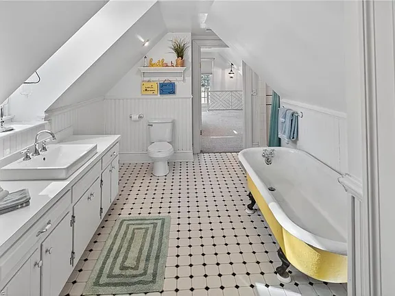 The updated kitchen offers modern conveniences while respecting the home’s historic integrity, making it a functional and stylish space for cooking and gathering.