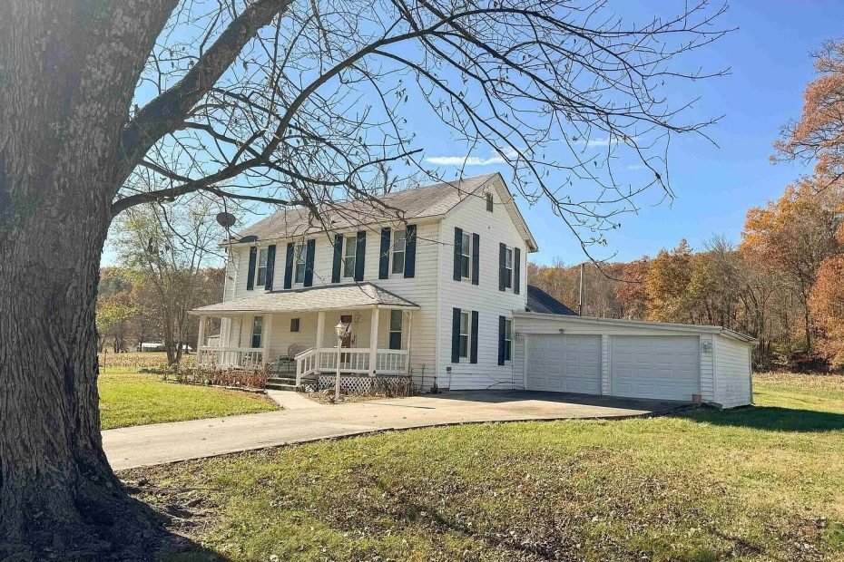 This 5 bedroom, 1 bathroom farmhouse sits on just over one acre near Wolf Lake, Illinois. The home offers about 2,018 square feet of living space and dates back to 1910. While the house shows its age, it also presents an opportunity for renovation. Because of the size and layout, the property may appeal to buyers who enjoy restoring older homes. Some people may also see potential for a quiet country residence with room for projects.