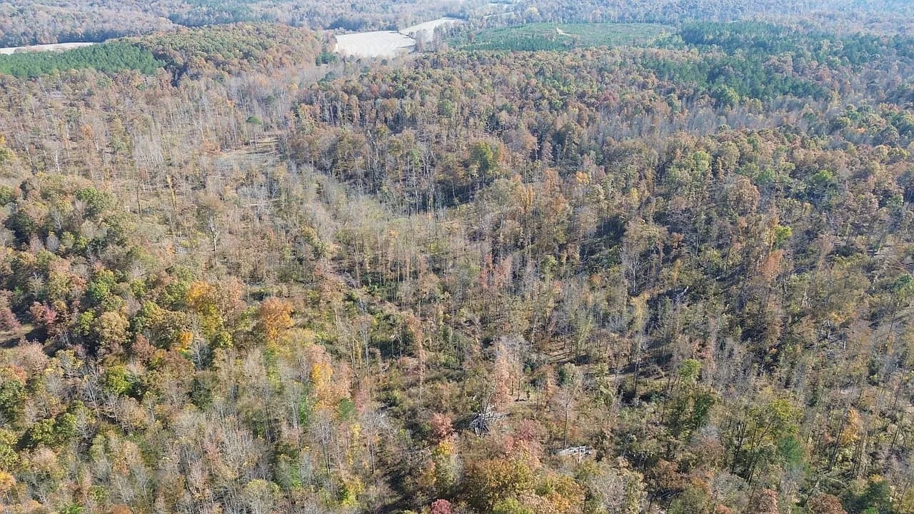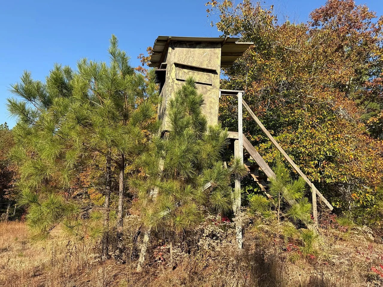 The land reflects intentional management that benefits both wildlife and long-term value. Approximately eighty acres underwent selective cutting, which promotes healthy regrowth and habitat diversity. Mature hardwoods cover the remaining acreage and provide seasonal cover. Several food plots, shooting houses, and hunting stands already exist across the property. A spring-fed pond and stream support consistent wildlife movement. As a result, deer, turkey, and small game activity remains strong throughout the year.