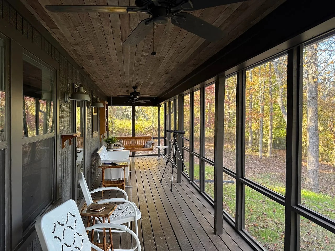 The cabin anchors the property and supports extended stays throughout every season. Built in 2014, the structure includes an open living space that connects directly to the kitchen. Two bedrooms and one bathroom keep the layout efficient and functional. Meanwhile, the laundry room simplifies longer visits. The screened porch overlooks the pond and encourages outdoor use during quiet evenings. Because the cabin sits thoughtfully within the landscape, daily routines flow easily between indoors and outdoors.
