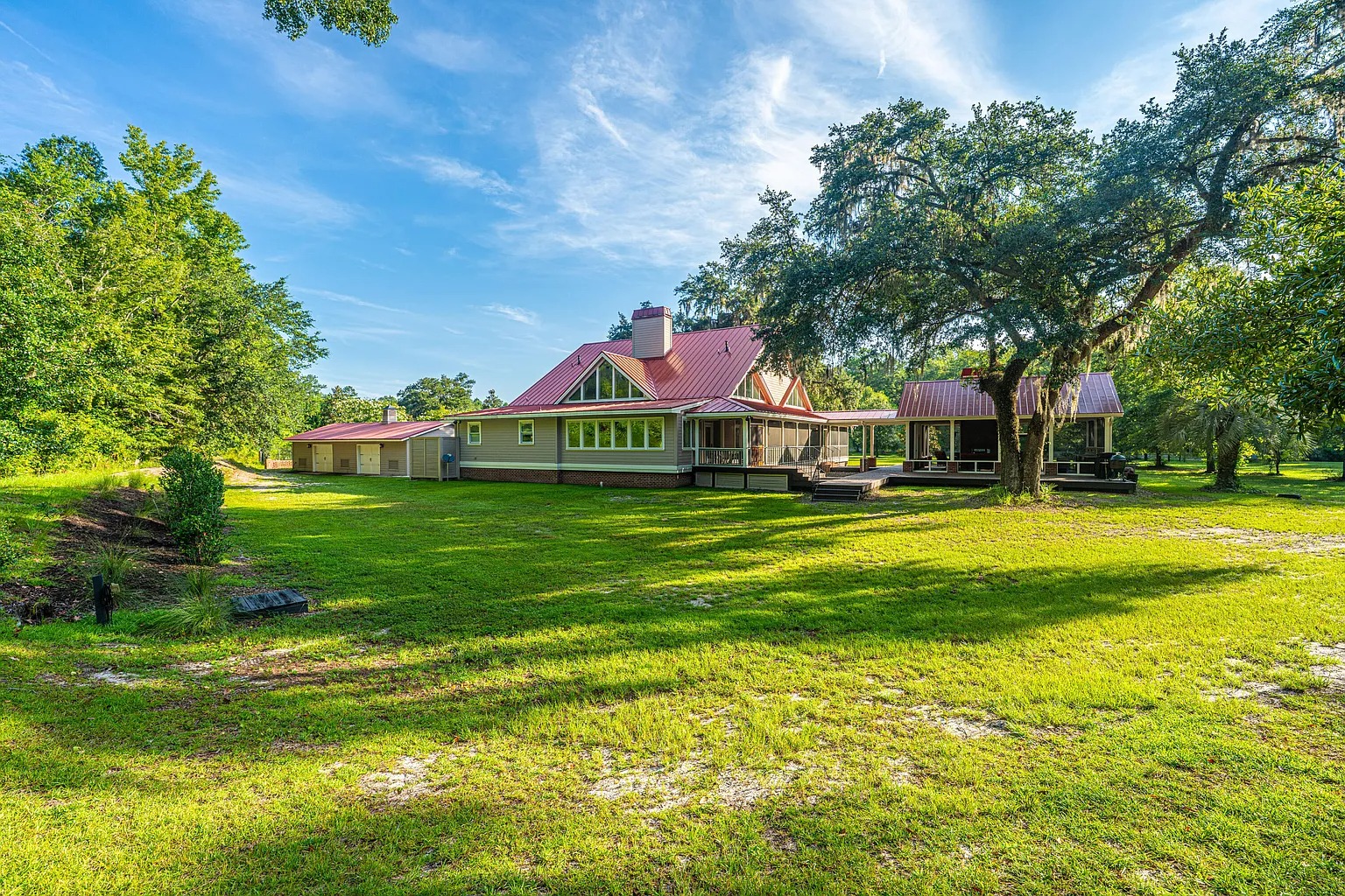 The property combines a primary residence with extensive acreage and several supporting structures.