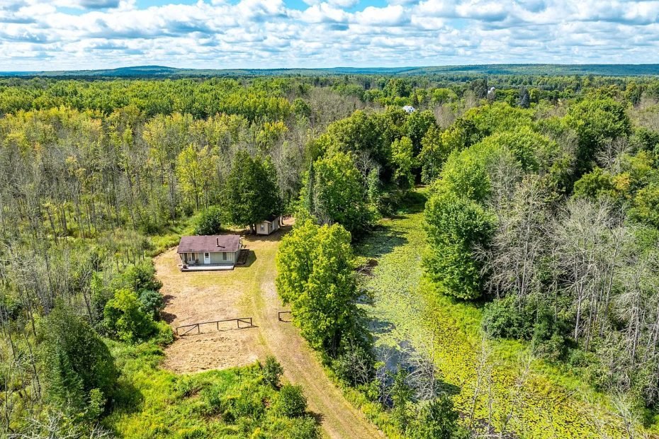 This small cabin sits across 38.1 acres of mixed terrain near Baraga, Michigan. The setting centers daily life around woods, water, and seasonal wildlife movement. Moreover, the land includes ash, maple, and cedar trees that shape constant visual change. An oxbow from the Sturgeon River crosses the property and supports habitat diversity. As a result, outdoor activity becomes part of everyday routine rather than an occasional escape. The acreage offers privacy while remaining reachable by paved county road. Therefore, the property balances seclusion with practical access.