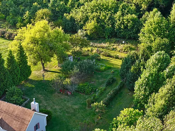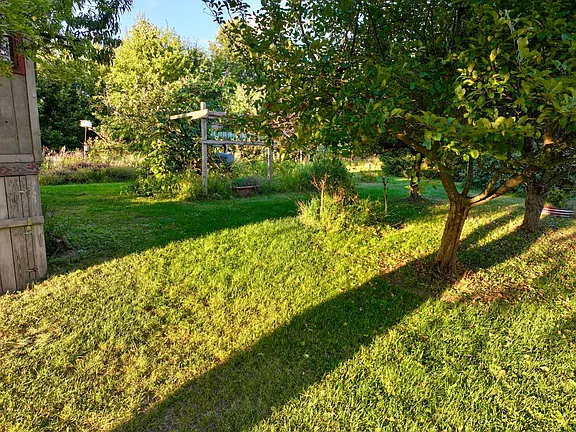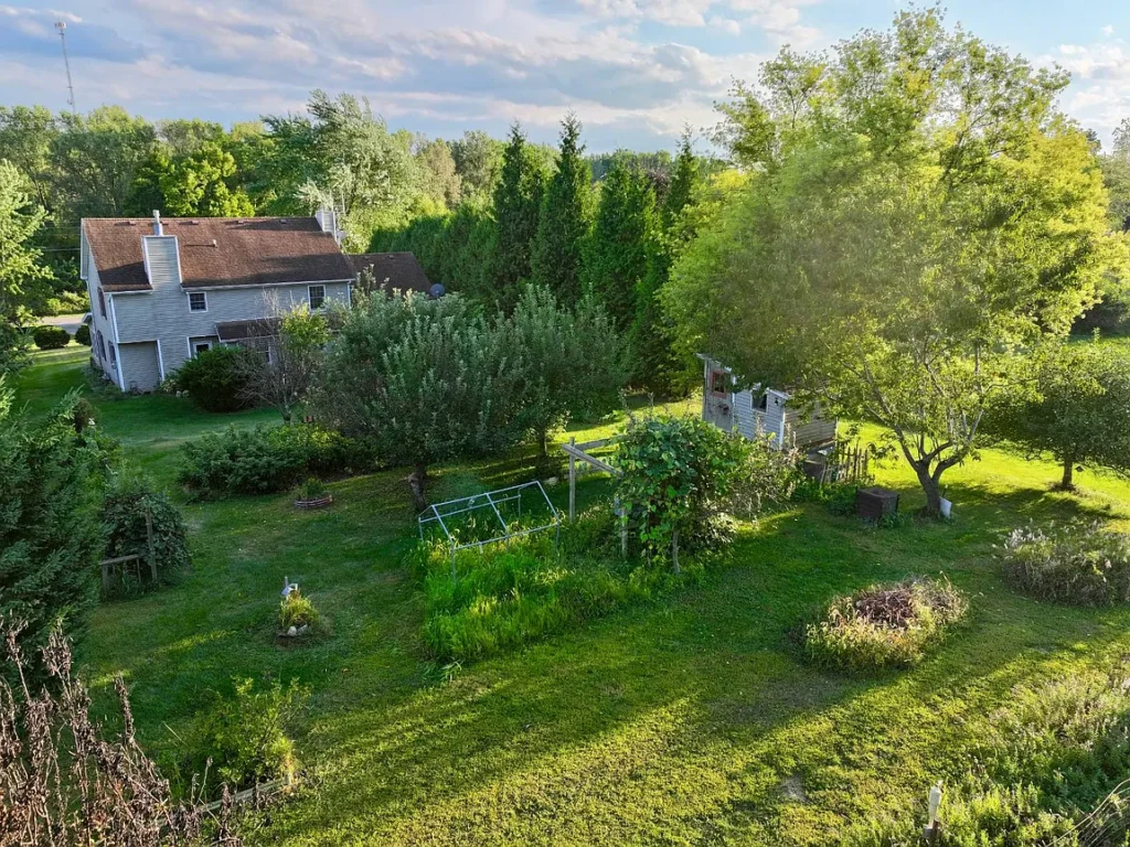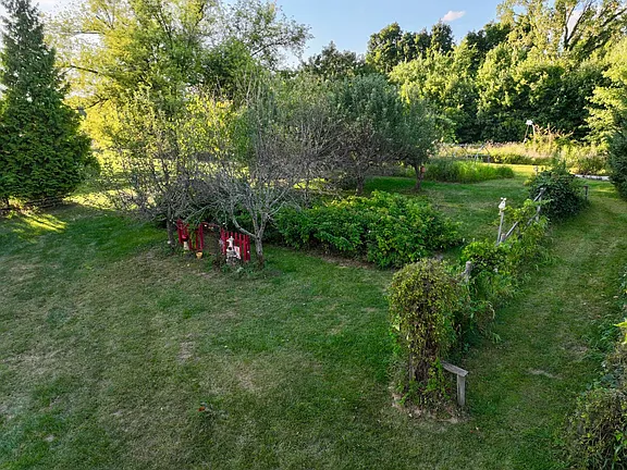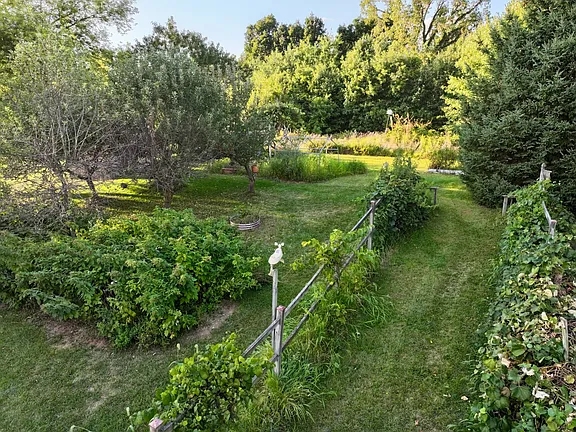 Step outside, and you’ll find yourself in a gardener’s paradise. The full mature orchard includes multiple apple and pear trees, producing fruit annually. A vibrant raspberry patch, grapevines, and an array of flowering bushes and perennial plants add beauty, color, and flavor to the landscape.