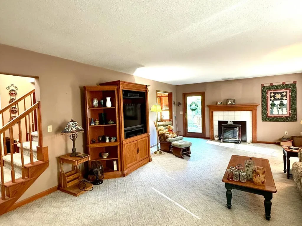 A standout feature is the sunroom, which was added to the original design. This room is warm and welcoming, complete with a cozy gas fireplace, inspected annually for safety and functionality. The sunroom offers direct access to the back deck, where you’re surrounded by seasonal flowers, the scents of apple and pear blossoms, and the tranquil sights and sounds of nature.