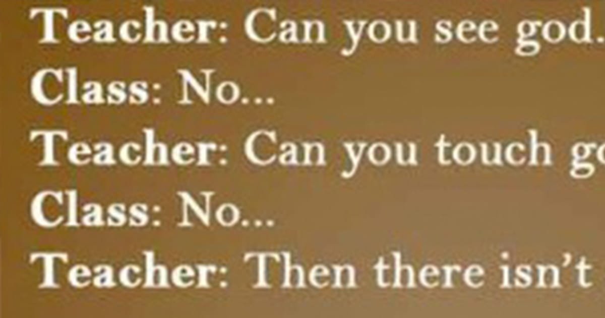 TEACHER: That’s my point. We can’t see God because he isn’t there. He doesn’t exist.