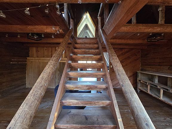 The home itself features the timeless character and architectural charm that make A-frame cabins so beloved. With soaring ceilings, exposed beams, and classic wood tones throughout, the interior immediately evokes that cozy cabin feeling people crave when escaping to the lake. Natural light filters through tall windows, highlighting the warm textures of wood and creating an inviting atmosphere that feels both rustic and serene. While the property does require repairs and updates, its structural style and location create a strong foundation for something truly special.