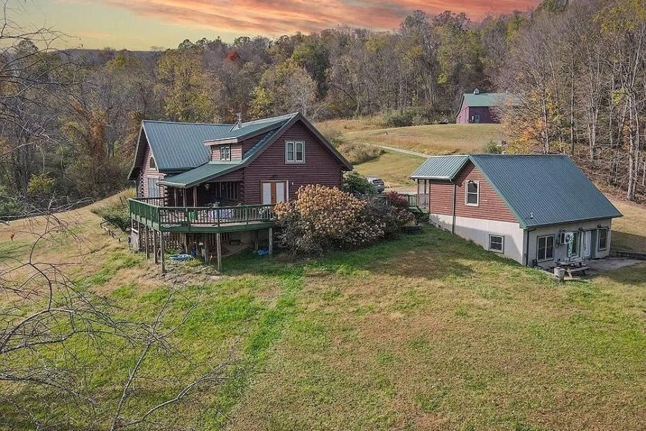 This 3 bedroom, 3 bathroom log cabin sits on 59.91 acres near Lost Creek, West Virginia. The home offers about 3,808 square feet of living space and includes a separate in-law suite. Because of that extra space, the layout could work for extended family, guests, or flexible living arrangements. The surrounding acreage includes woods, rolling terrain, and a pond. For someone interested in country living or a private retreat, this type of property provides room to explore different ideas.
