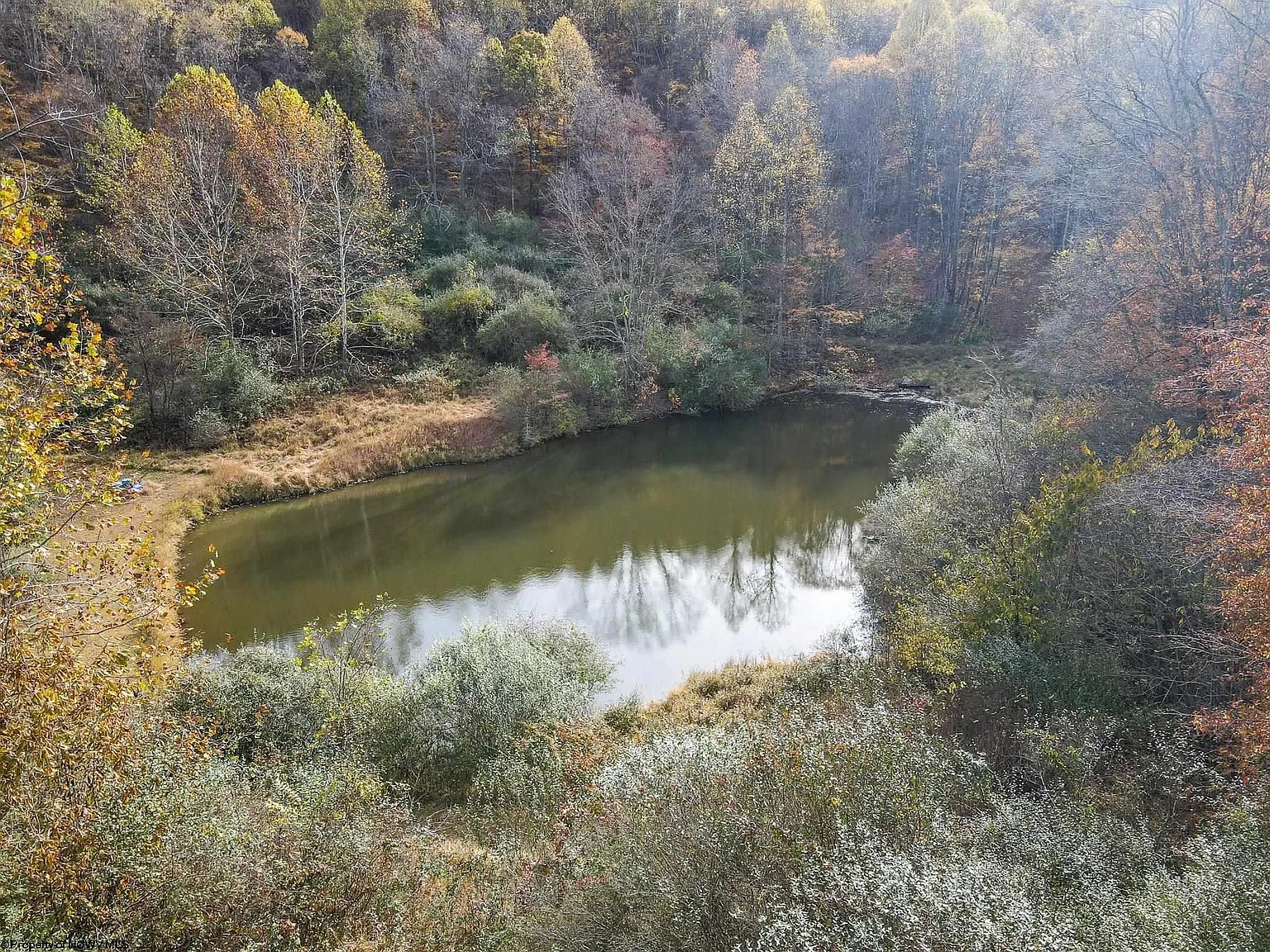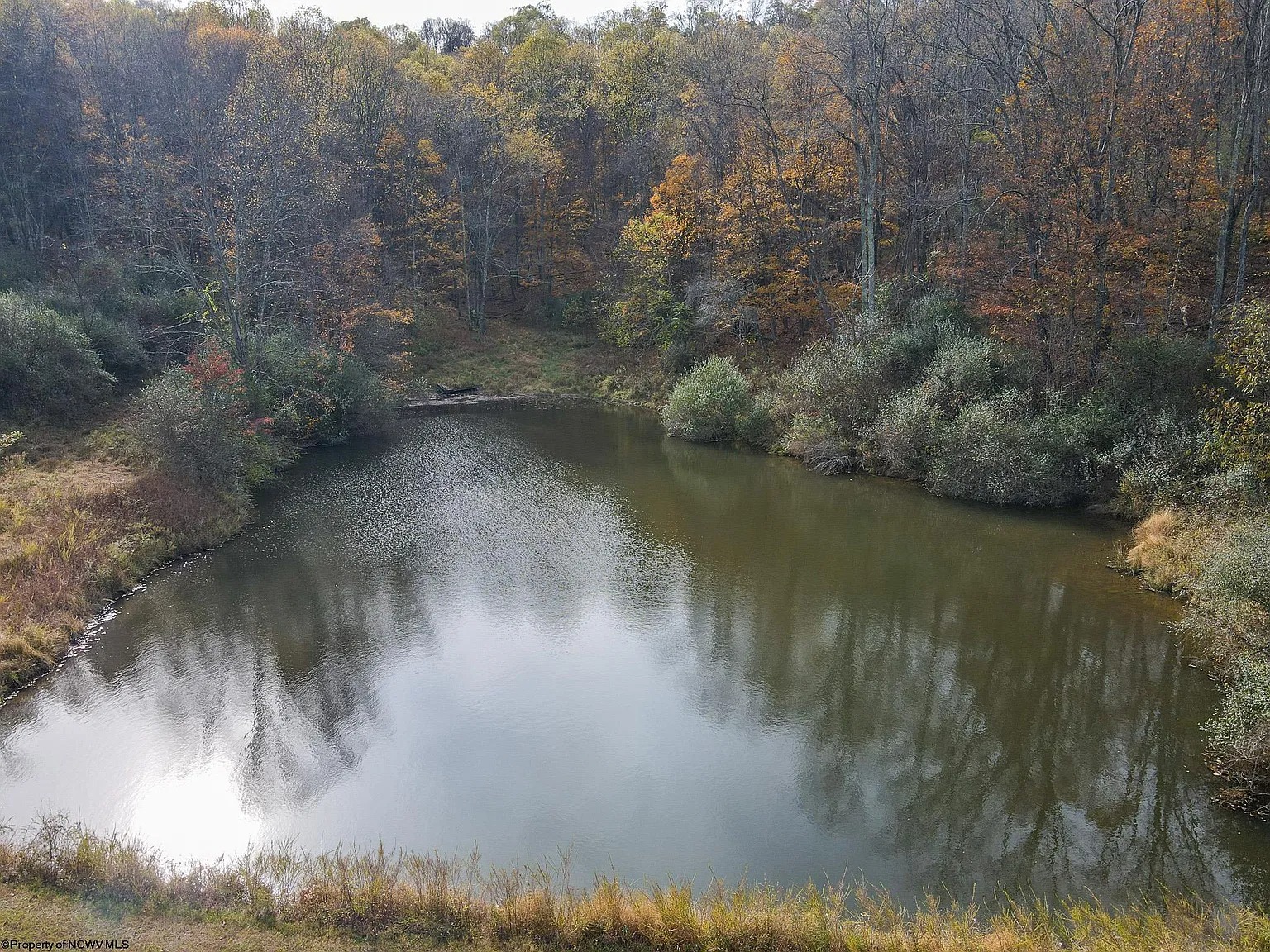 A pond sits on the property and adds a natural feature to the land. Some owners enjoy ponds for fishing or simply relaxing near the water.
