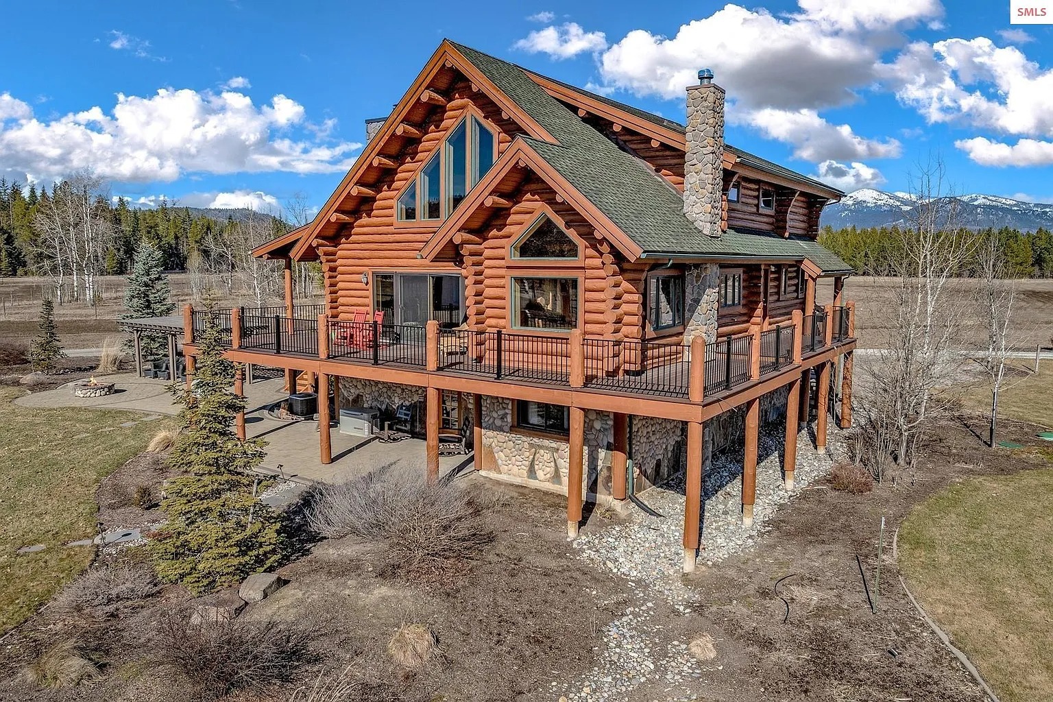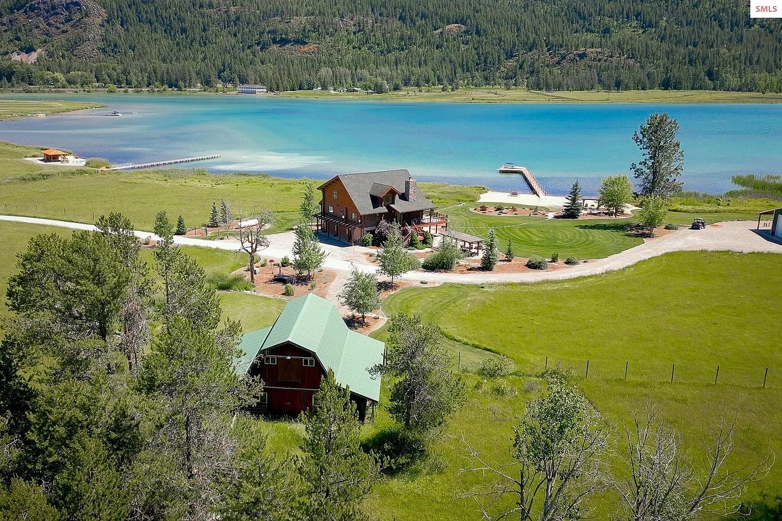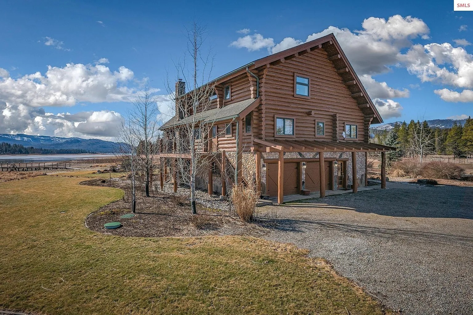 This 4 bedroom, 3 bathroom log home sits on 15.58 acres in Sagle, Idaho. The house offers about 2,509 square feet of living space and was built in 1999. The property also includes over 500 feet of private shoreline along a nearby waterway. Because of that setting, the land may appeal to people who enjoy outdoor living and waterfront access. Some readers may see this as a rural residence. Others might consider it for seasonal stays or short-term rental use.