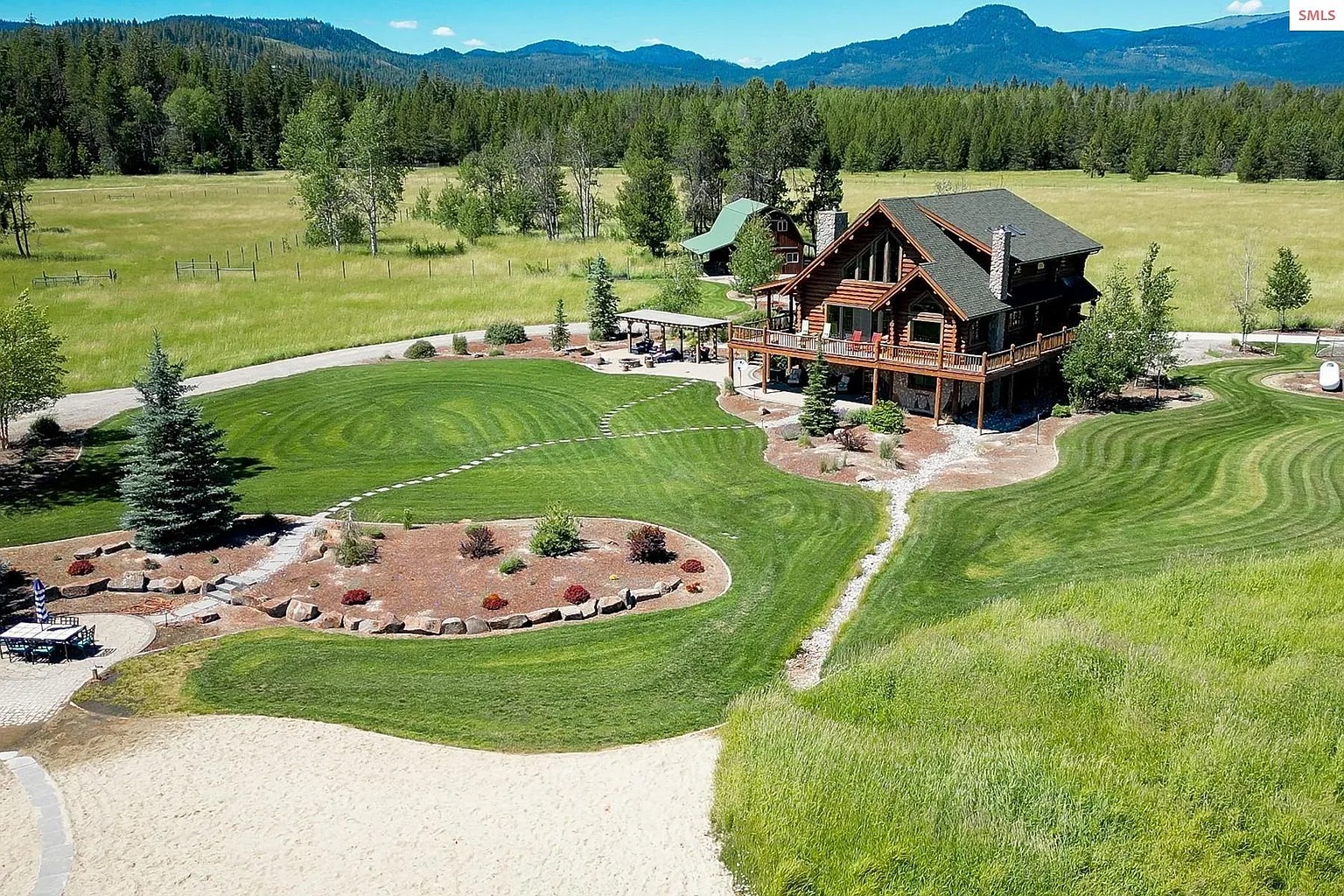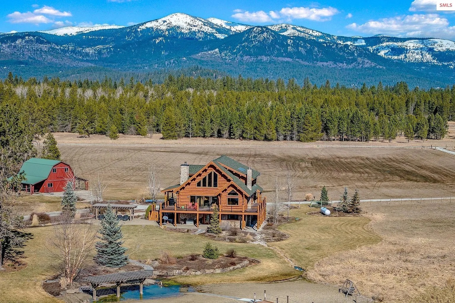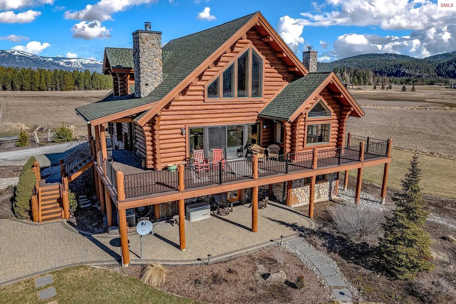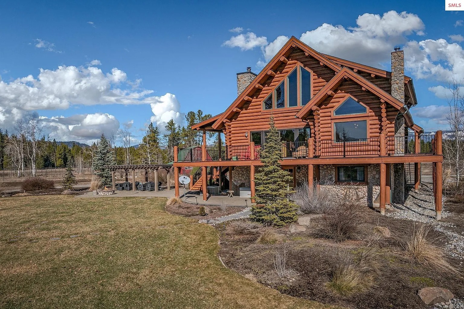 This 4 bedroom, 3 bathroom log home sits on 15.58 acres in Sagle, Idaho. The house offers about 2,509 square feet of living space and was built in 1999. The property also includes over 500 feet of private shoreline along a nearby waterway. Because of that setting, the land may appeal to people who enjoy outdoor living and waterfront access. Some readers may see this as a rural residence. Others might consider it for seasonal stays or short-term rental use.