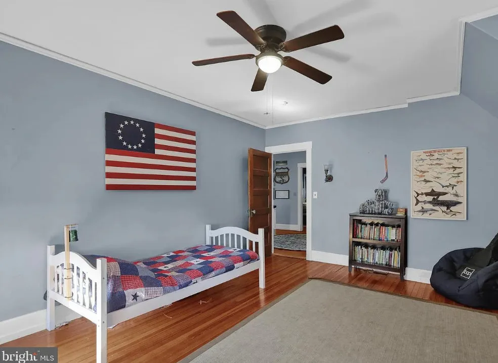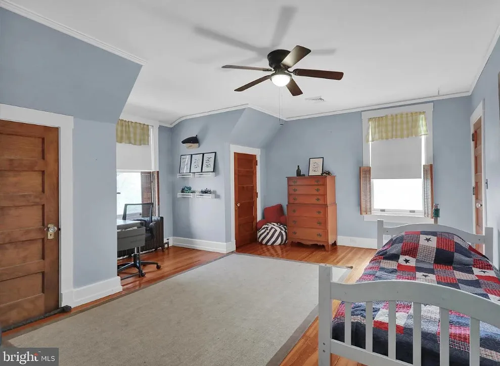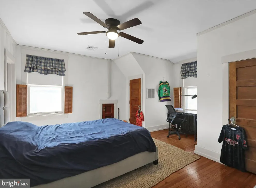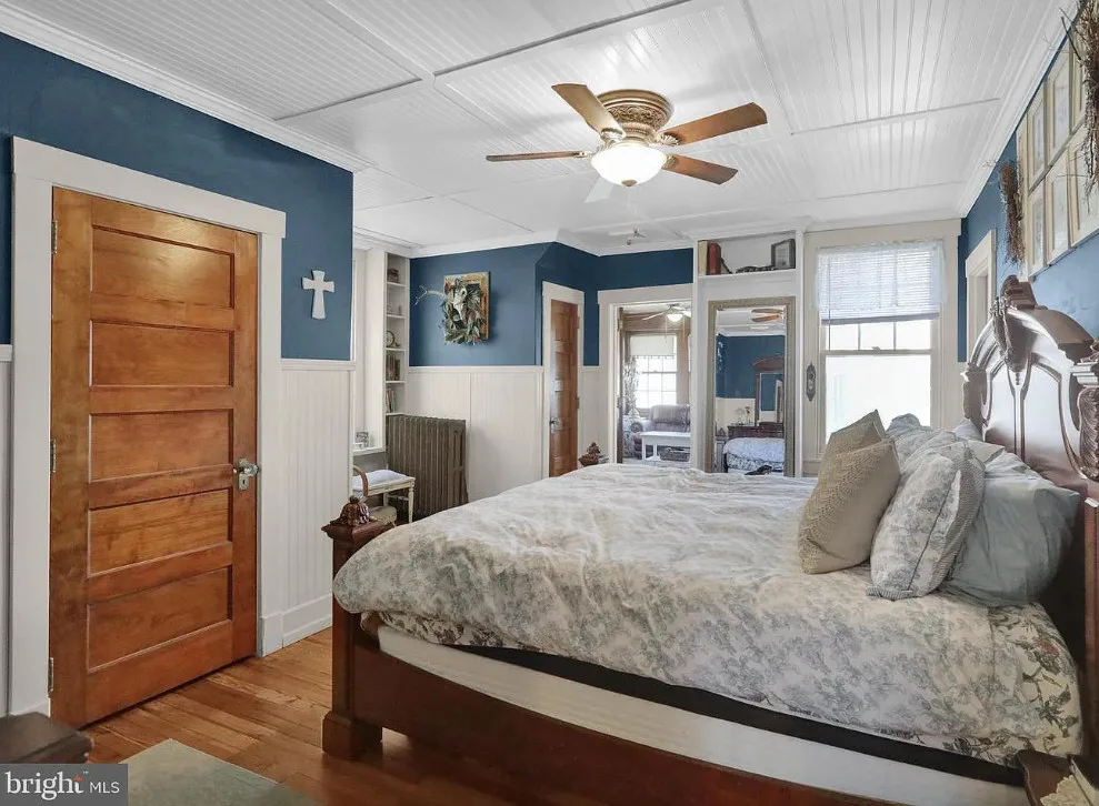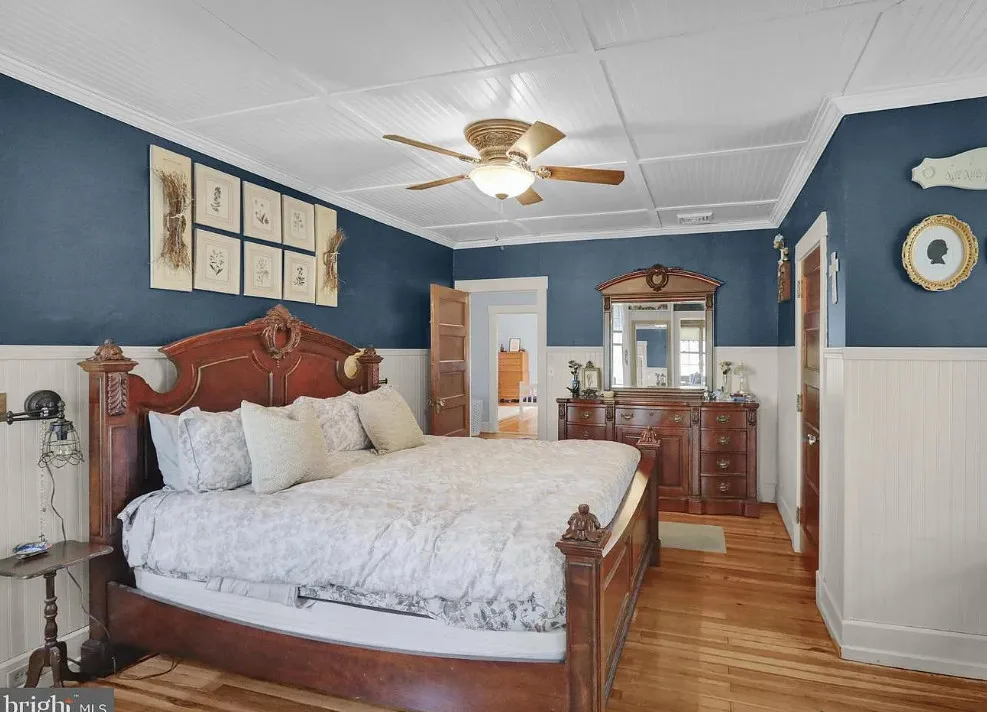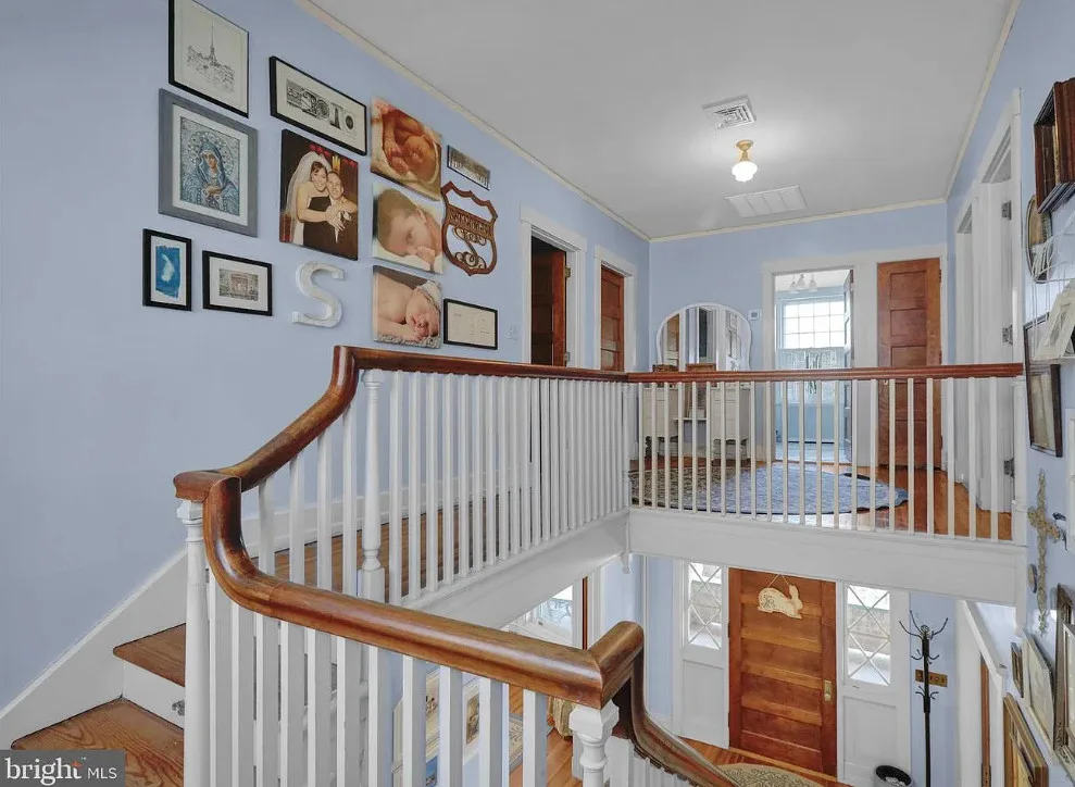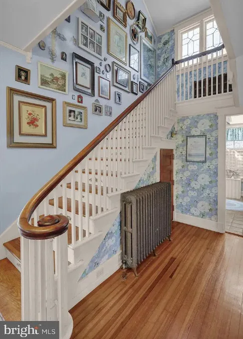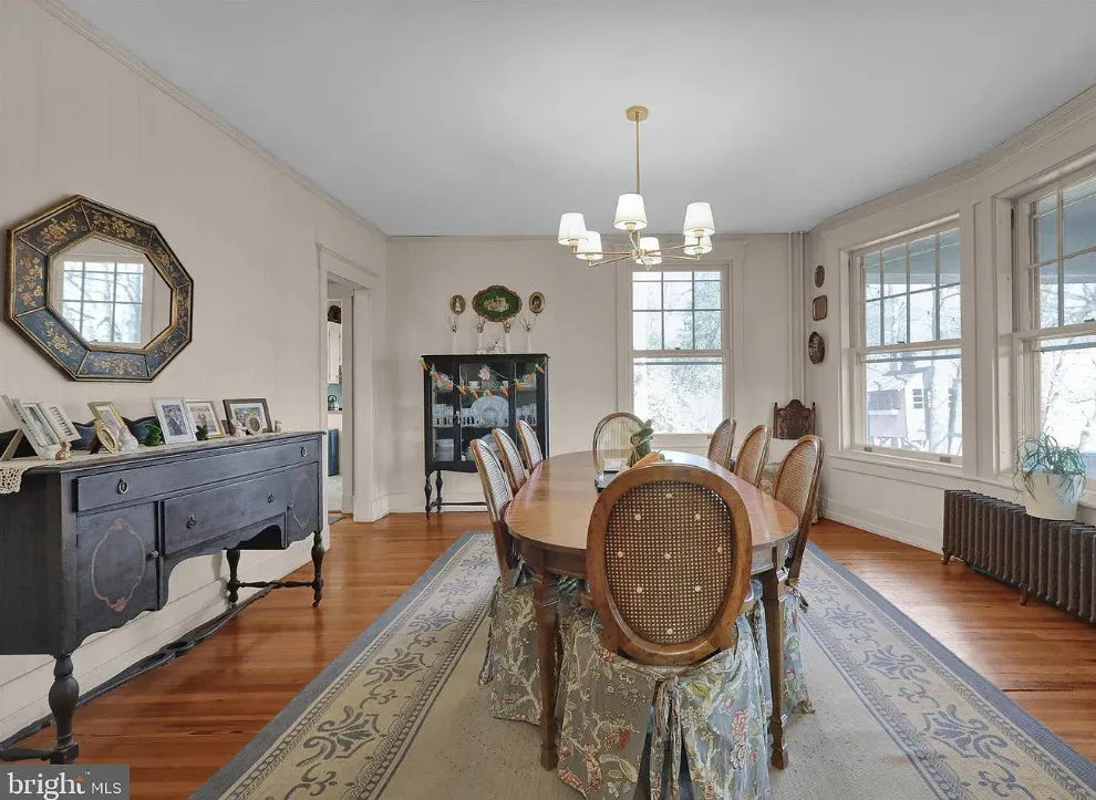 This is such a sweet interior! What is your favorite part? I love the back staircase and that stone entrance! The house was built in 1900. It is located on 6.06 acres in Reading, Pennsylvania. The house features a covered front porch, wood floors, pretty staircase, wide baseboards, vintage light fixtures, bead board, sunroom, pocket doors, exposed beams, a lot of natural light, crown moulding and a back staircase. I love amount of natural light in this house and how about that beautiful back staircase! There is a detached garage on the property and I really love the stone entrance of the driveway. Four bedrooms, two bathrooms and 3,169 square feet. $479,900