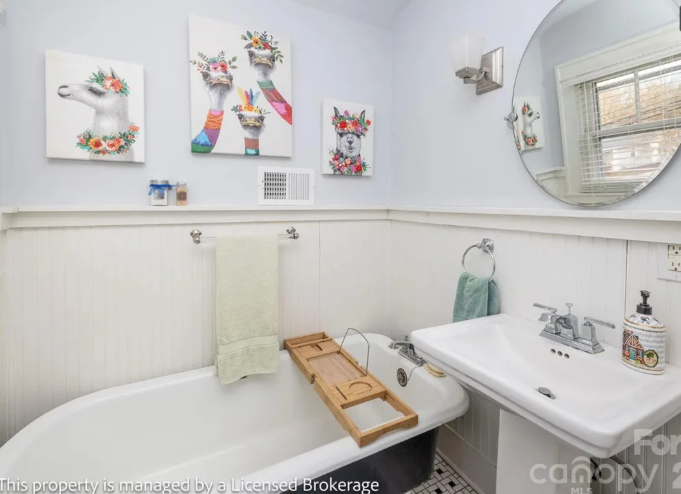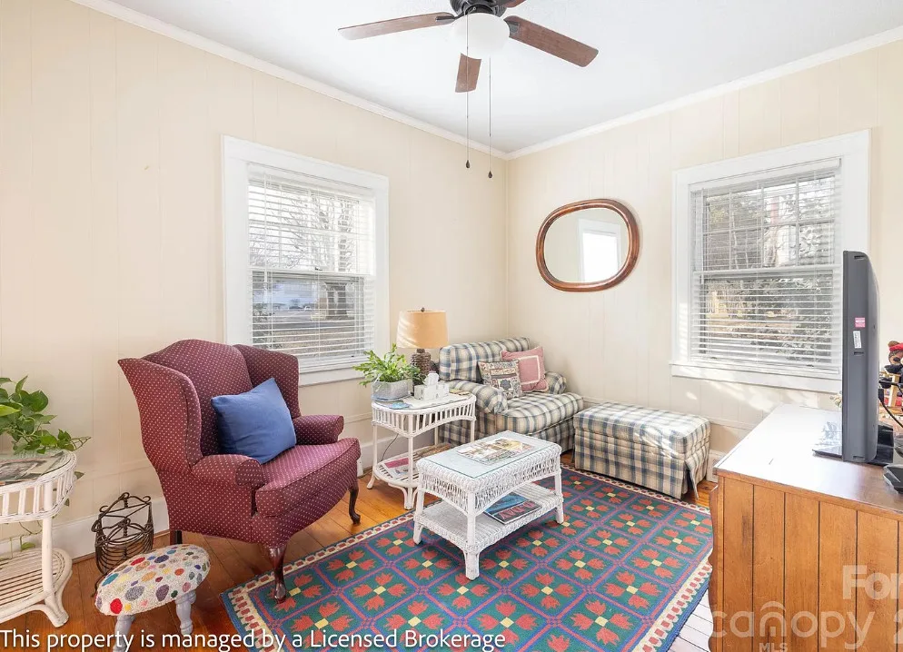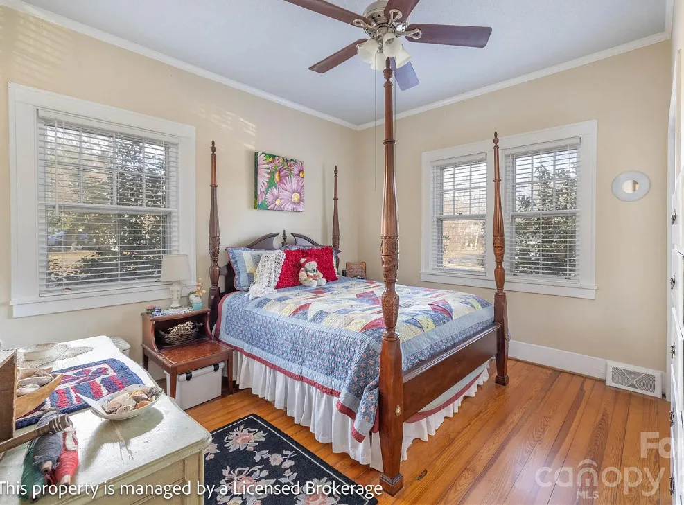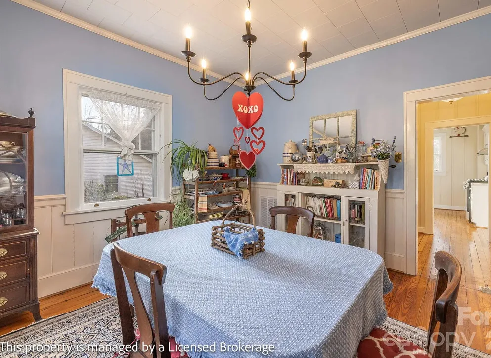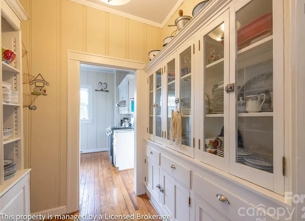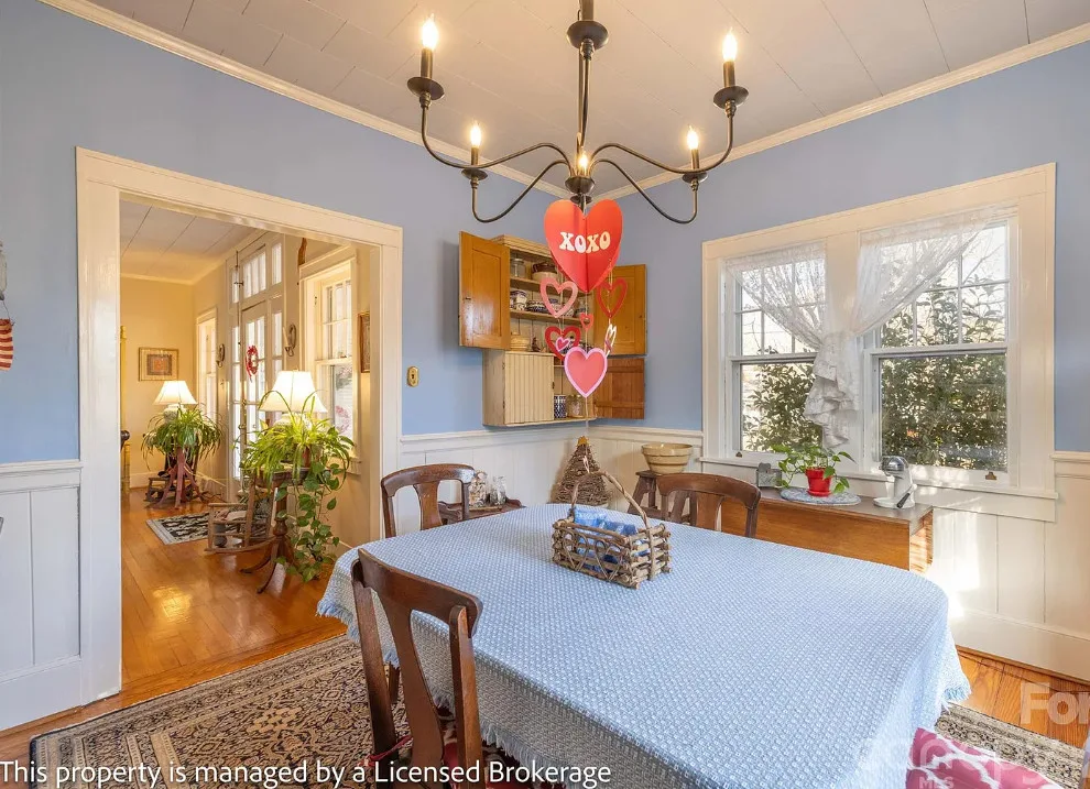 I like this interior! So much natural light and nice features. The house was built in 1915. It is located on .39 acre in Badin, North Carolina. The house features a covered front porch, sunroom, wood floors, a lot of natural light, crown moulding, baseboards, wainscoting, built-in china cabinet and a claw foot tub. There is a detached garage on the property. The home is within walking distance to the downtown village where you will find antique shops, restaurants, coffee shop and a bakery. Three bedrooms, two bathrooms and 2,221 square feet. $312,900