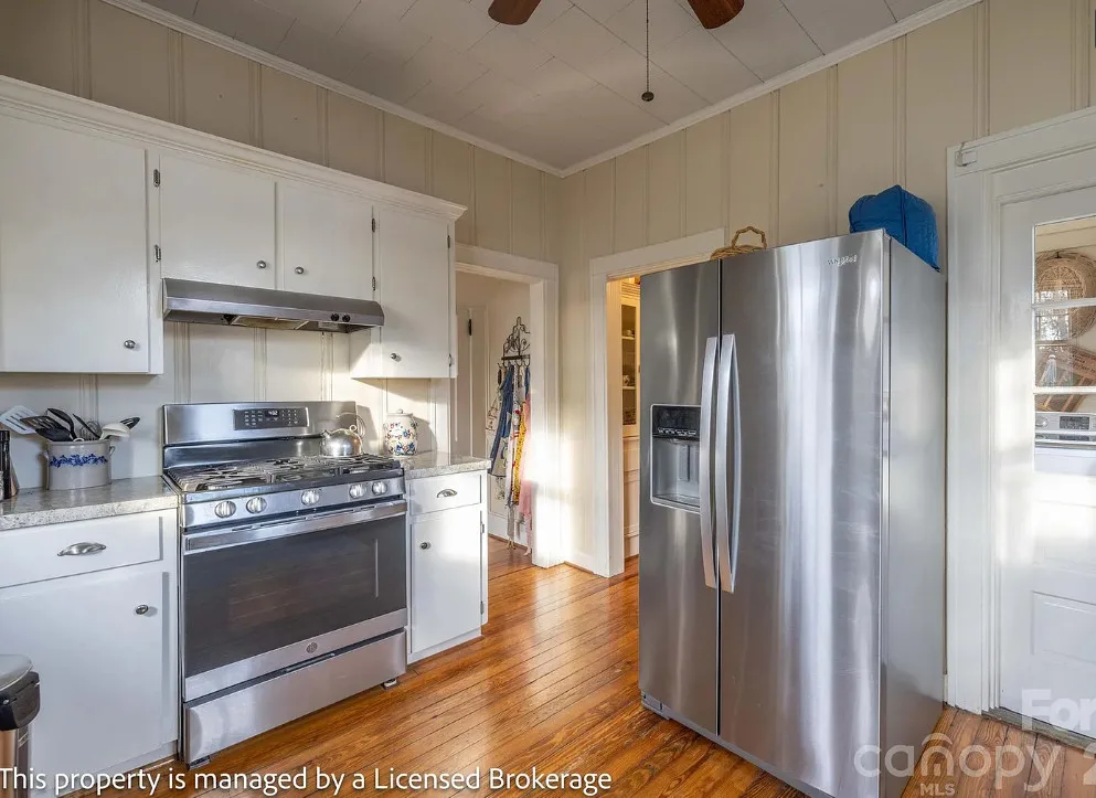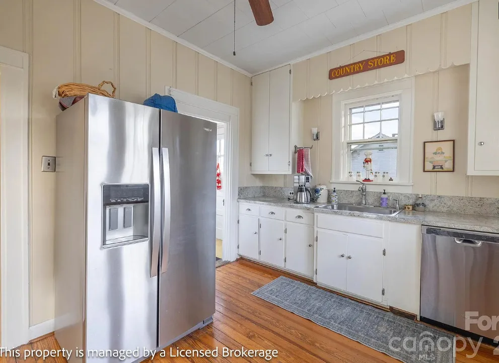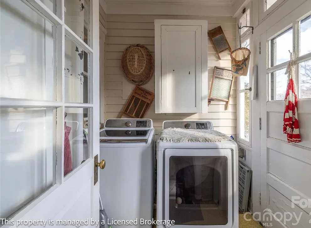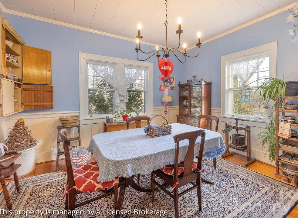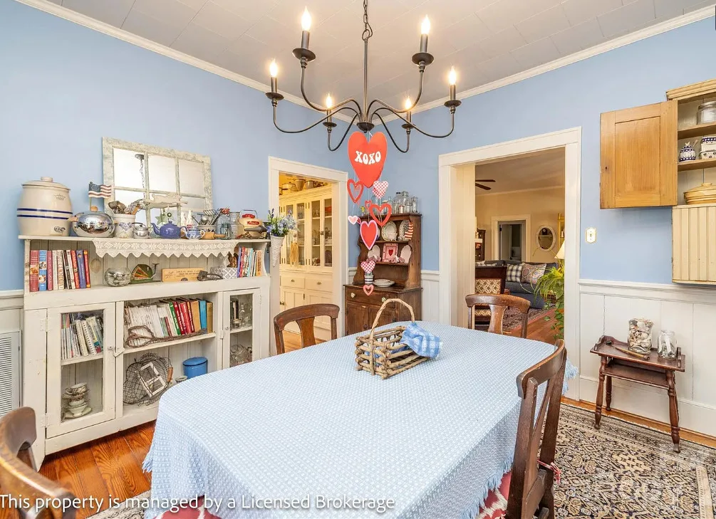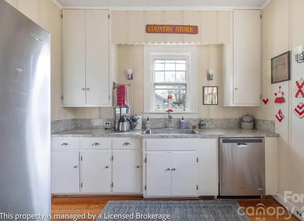 I like this interior! So much natural light and nice features. The house was built in 1915. It is located on .39 acre in Badin, North Carolina. The house features a covered front porch, sunroom, wood floors, a lot of natural light, crown moulding, baseboards, wainscoting, built-in china cabinet and a claw foot tub. There is a detached garage on the property. The home is within walking distance to the downtown village where you will find antique shops, restaurants, coffee shop and a bakery. Three bedrooms, two bathrooms and 2,221 square feet. $312,900