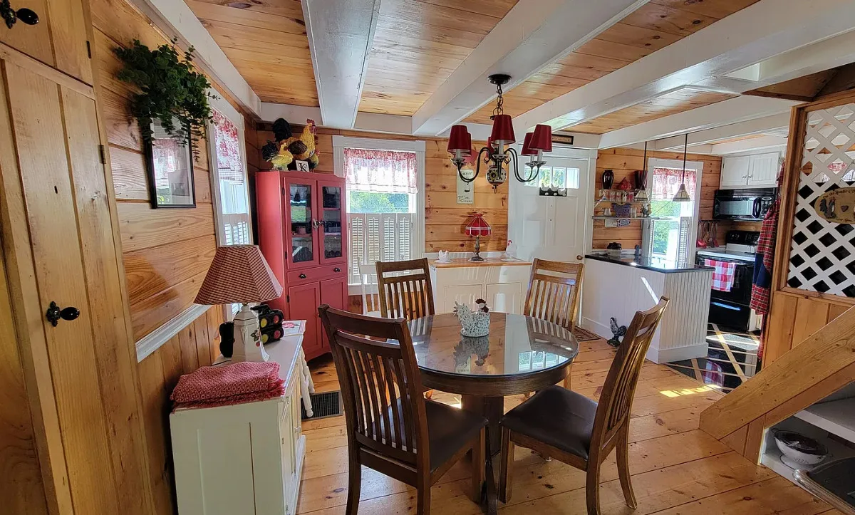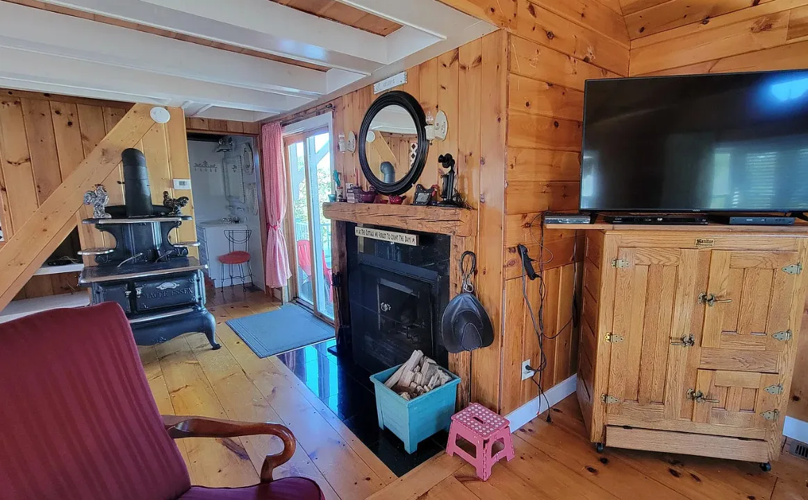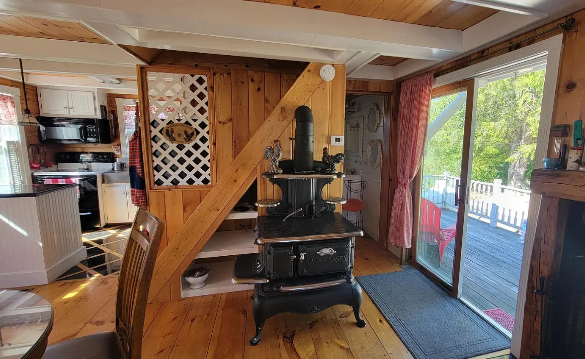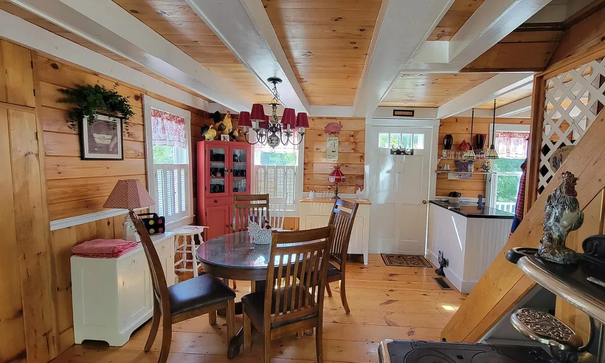 This is a cute cottage! Listing says it is near local beaches and amenities. The house was built in 1900. It is located on 1.2 acres in Jonesboro, Maine. The house features a front porch, wide plank wood floors, exposed beams, a lot of natural light, cute kitchen, nice stove, knotty pine and vaulted ceilings. The home was recently moved back from the road and placed on a concrete basement. Two bedrooms, two bathrooms and 756 square feet. $195,000