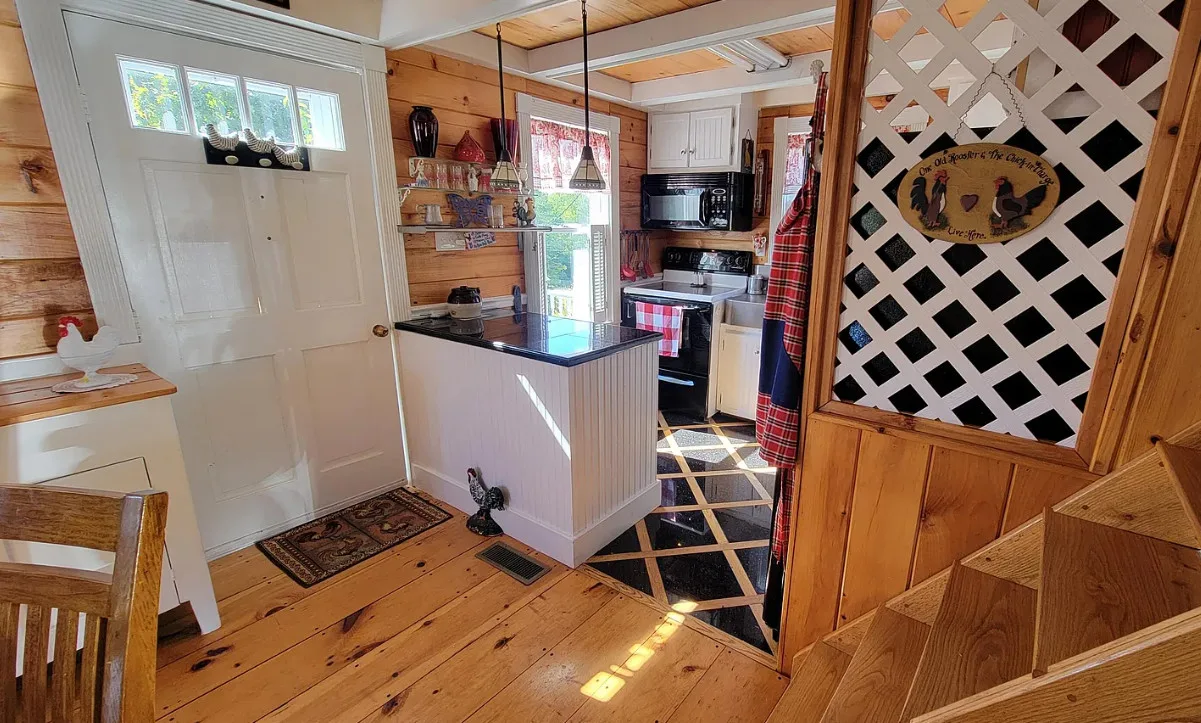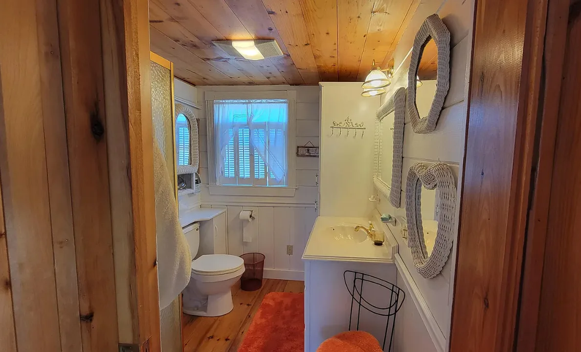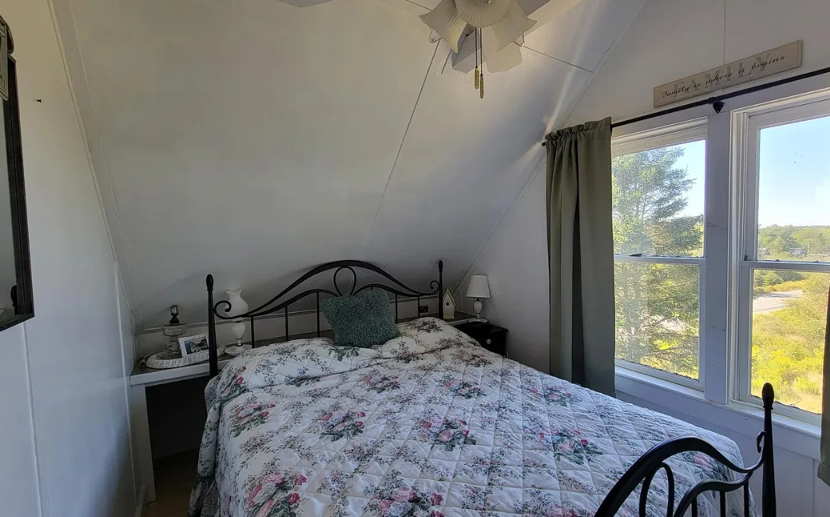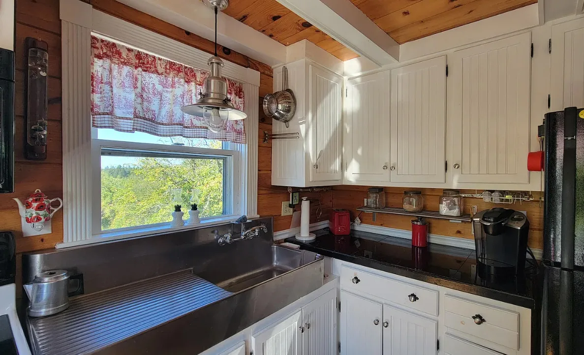 This is a cute cottage! Listing says it is near local beaches and amenities. The house was built in 1900. It is located on 1.2 acres in Jonesboro, Maine. The house features a front porch, wide plank wood floors, exposed beams, a lot of natural light, cute kitchen, nice stove, knotty pine and vaulted ceilings. The home was recently moved back from the road and placed on a concrete basement. Two bedrooms, two bathrooms and 756 square feet. $195,000