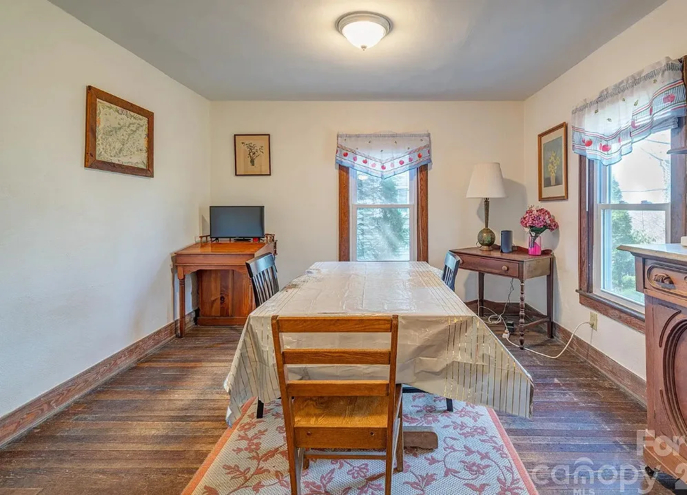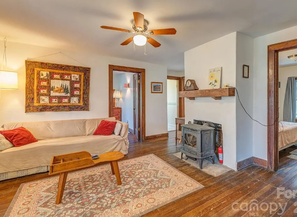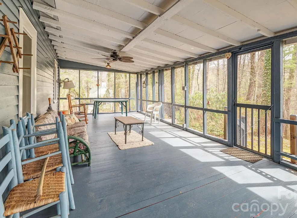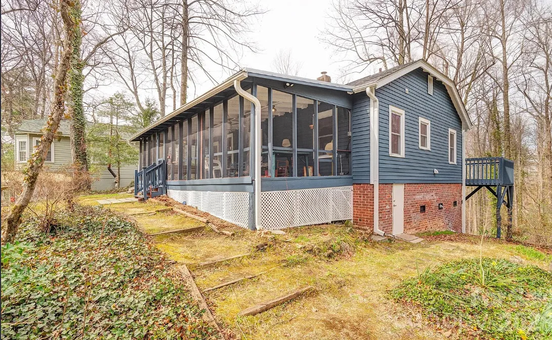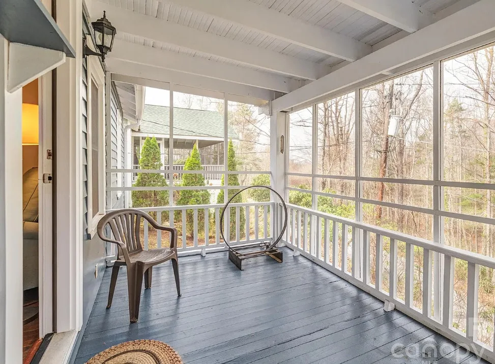 That’s a nice screened in porch! The North Carolina mountain house was built in 1940. It is located on .45 acre in Saluda, North Carolina. The house features a large screened in front porch, original wood floors, baseboards, a wood stove, a screened in back porch, deck and a basement. Two bedrooms, two bathrooms and 1,040 square feet. $275,000