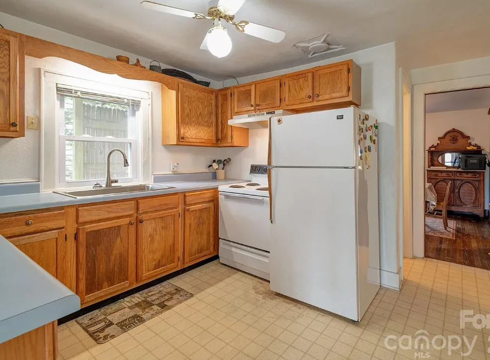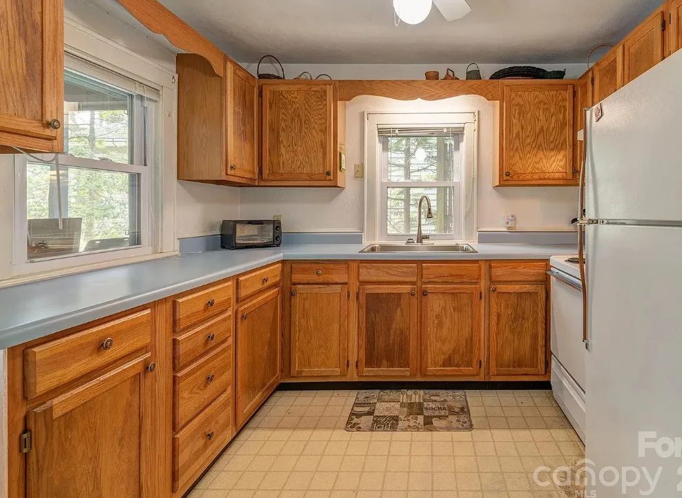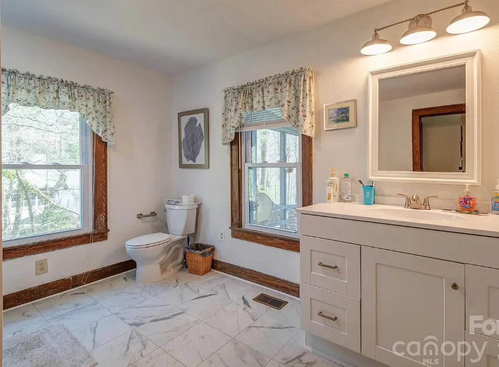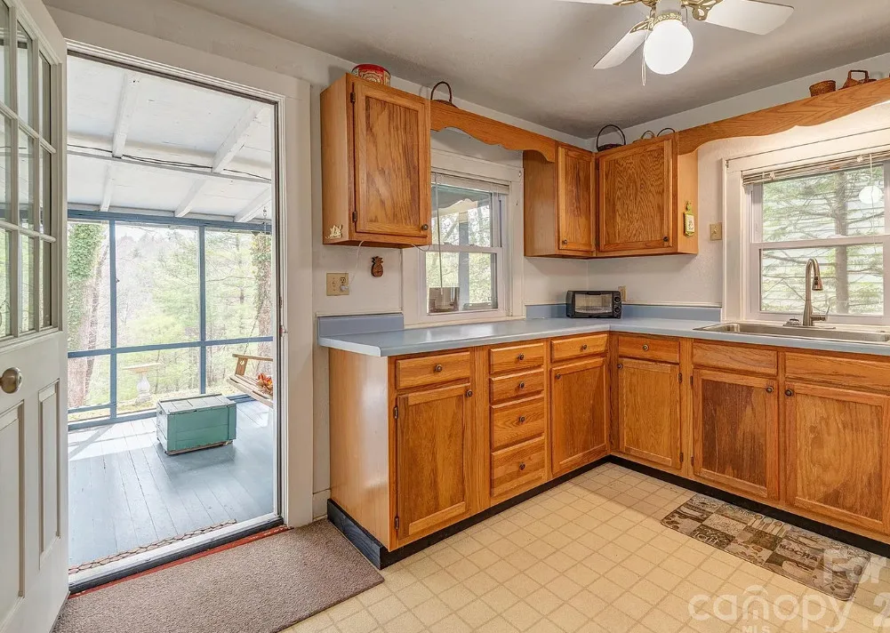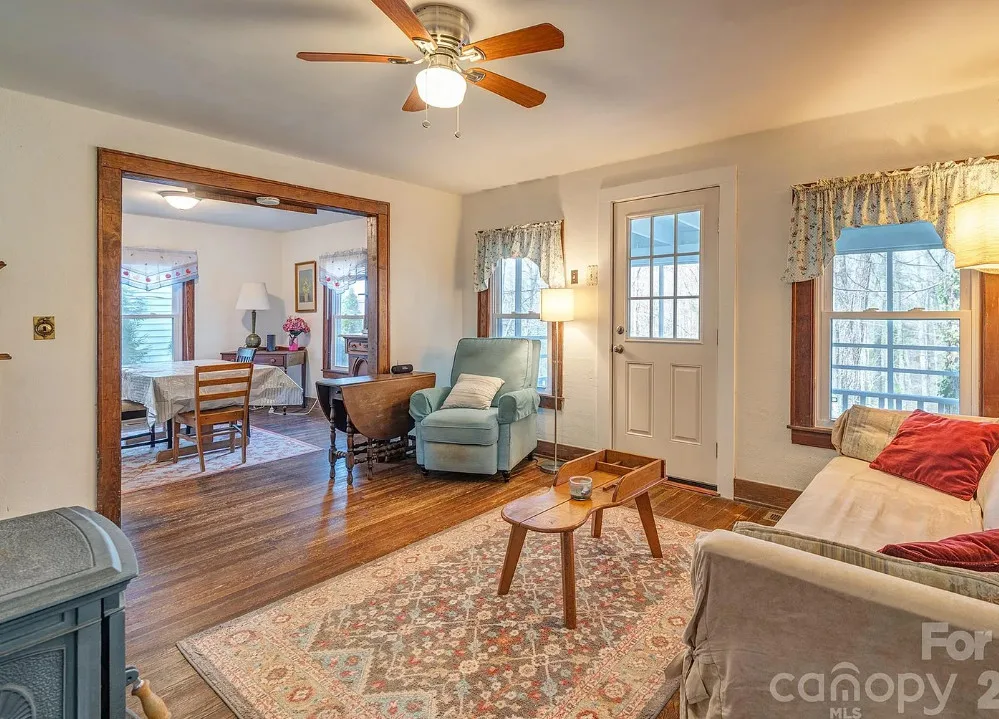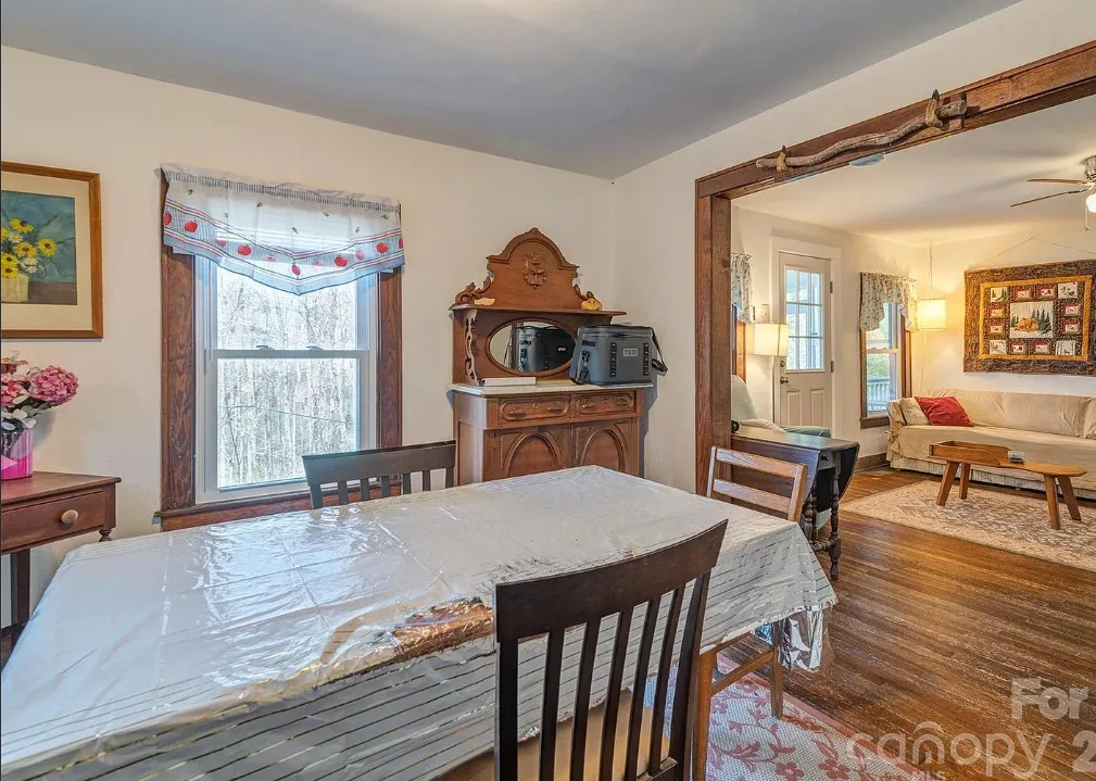 That’s a nice screened in porch! The North Carolina mountain house was built in 1940. It is located on .45 acre in Saluda, North Carolina. The house features a large screened in front porch, original wood floors, baseboards, a wood stove, a screened in back porch, deck and a basement. Two bedrooms, two bathrooms and 1,040 square feet. $275,000